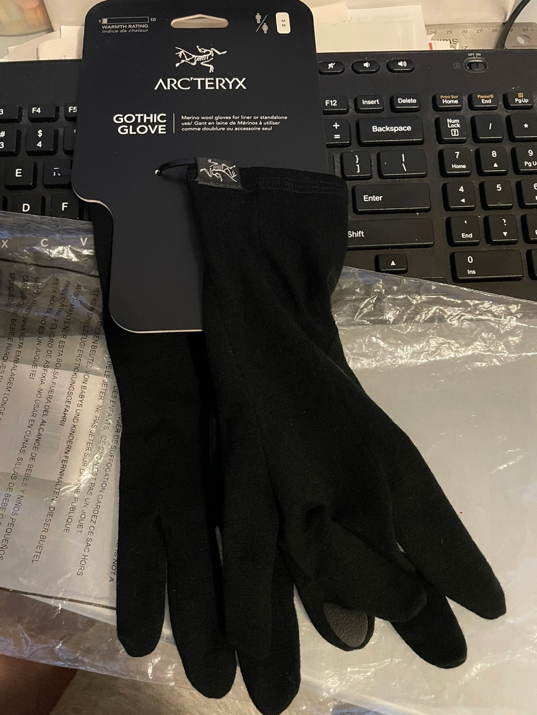 BNWT Arc'teryx Gothic Glove, lightweight, touch screen compatible merino wool glove designed for use as a standalone or liner. Pick up address is near Edmonds Burnaby or Burrard Vancouver