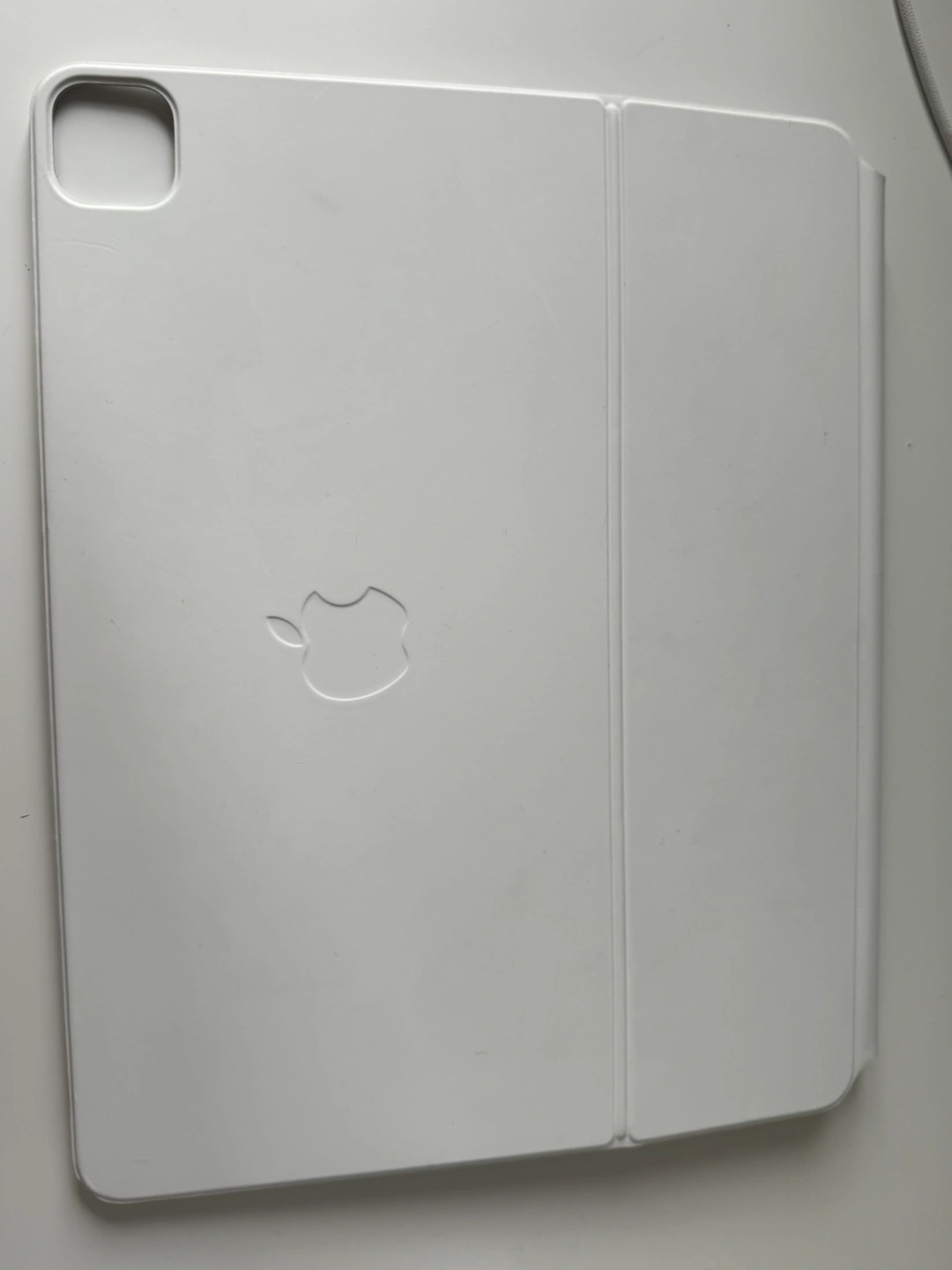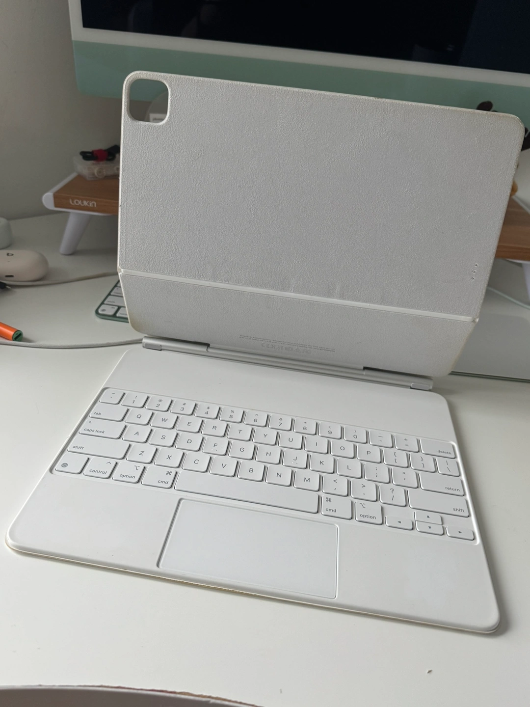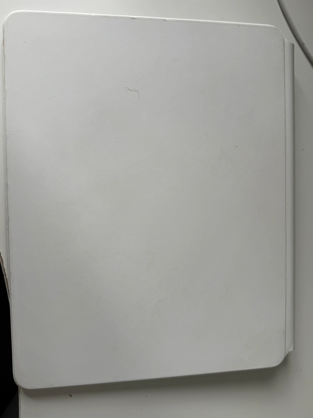 A white Apple Magic Keyboard for iPad with a trackpad and backlighting. Selling because I find it uncomfortable to use No box
