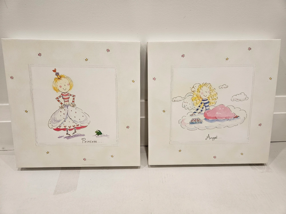 Two canvas prints featuring a princess and an angel. Good for baby's room cute art 11.5 x11.5 inch Check my other ad more decor