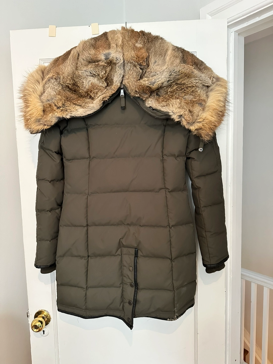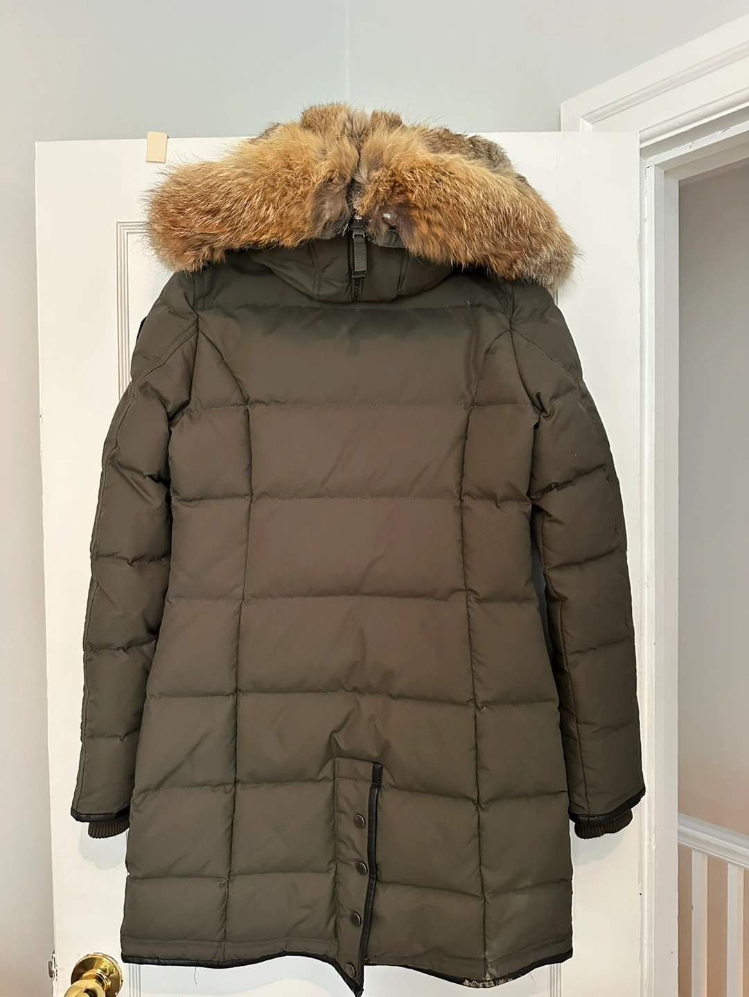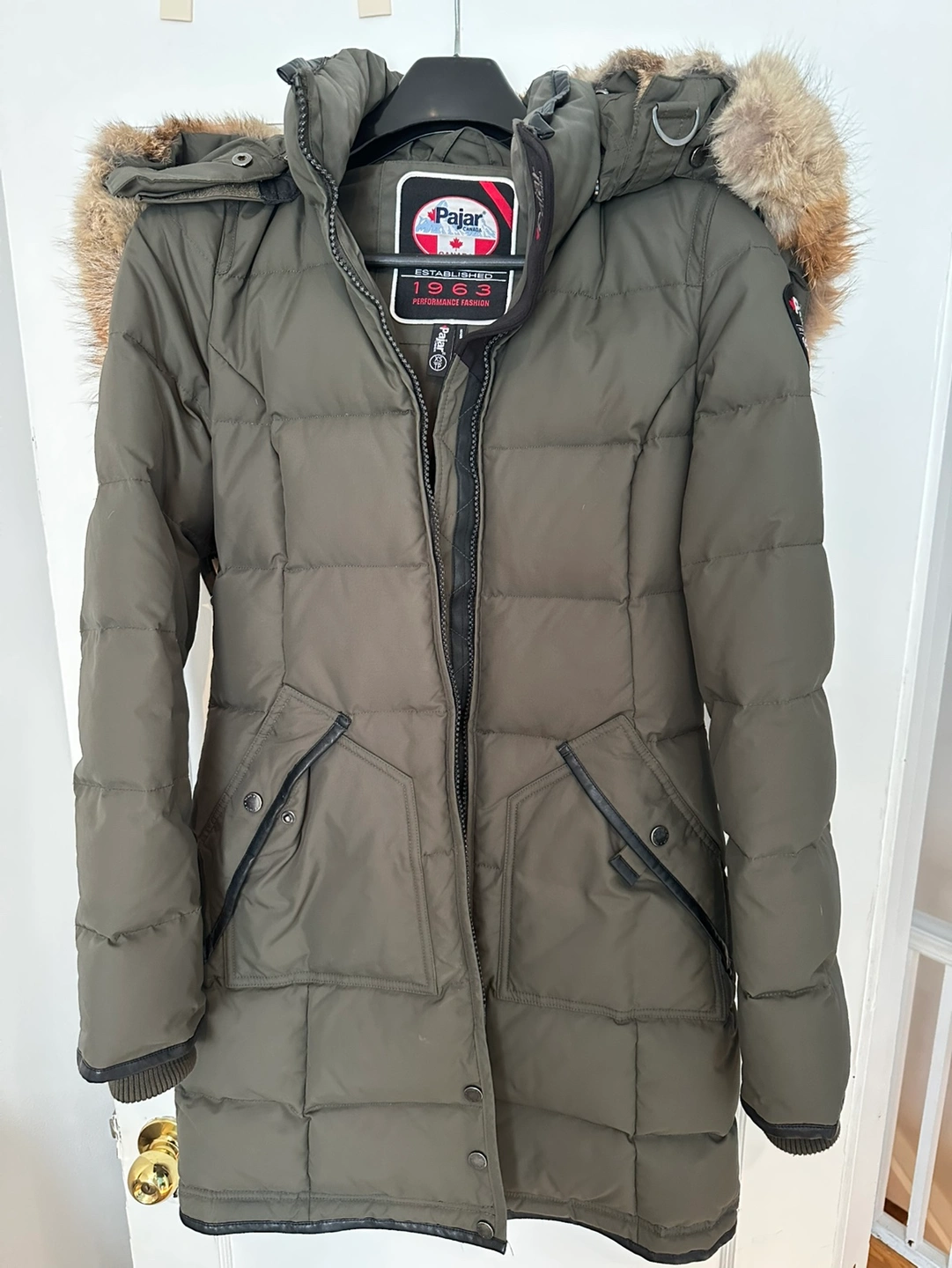 Original Women's Pajar Canada Green Down Parka with removable genuine fox and rabbit fur trimmed hood. Army green colour, Size XS. It has everything a winter coat may need: -two-way zippers, -buttons in the bottom to open/close, -hood can be worn open/closed, -lined pockets. Super flattering and warm at the same time! Retails around 600-700. I’d never get rid of it but sadly I doubt it will ever fit me again.
