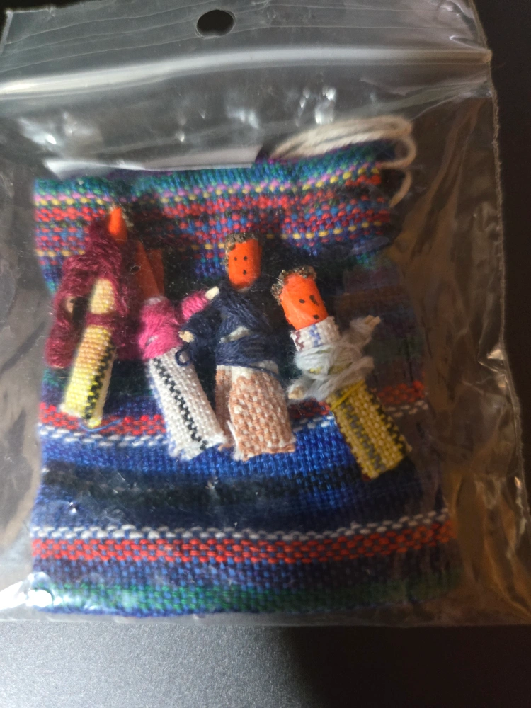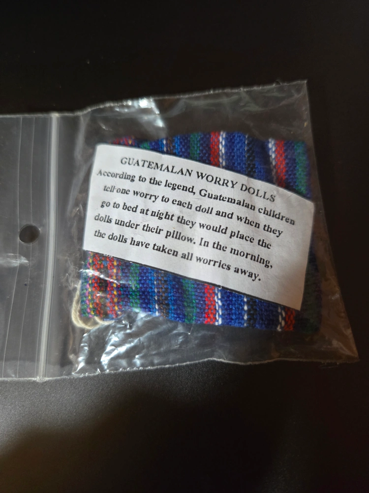 Set of worry dolls in a traditional woven bag. See explanation in 2nd Pic. Sweet gift for a child (or adult) who may like to dissipate their anxieties in their sleep.