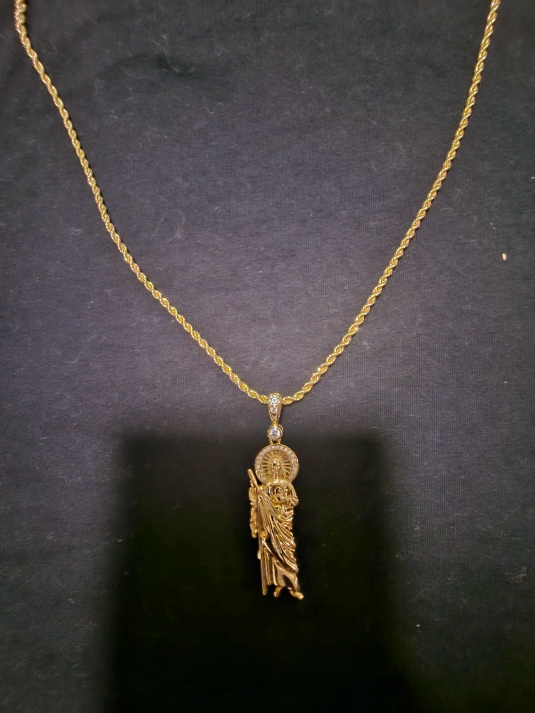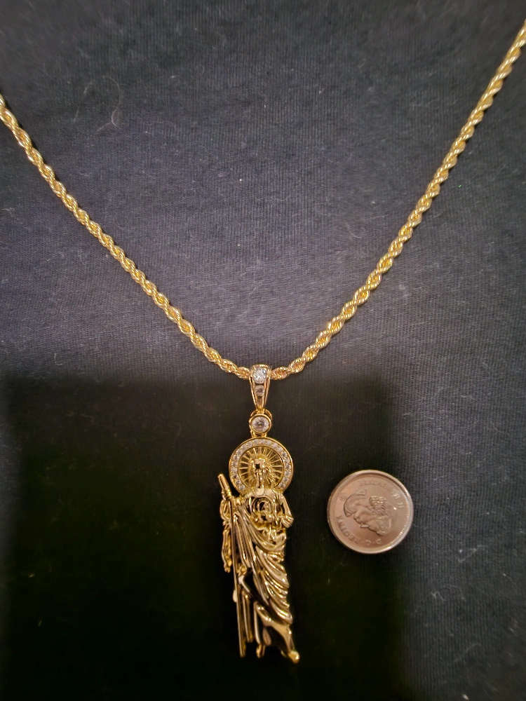 Gold chain with Saint Jude Thaddeus pendant with a halo of CZ stones.