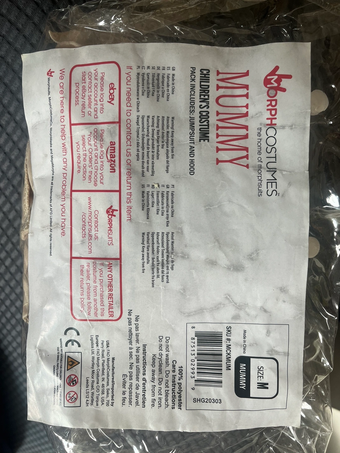 Size M (kids) 6-8 years old Worn only once (cleaned) Made by Morph Costumes.