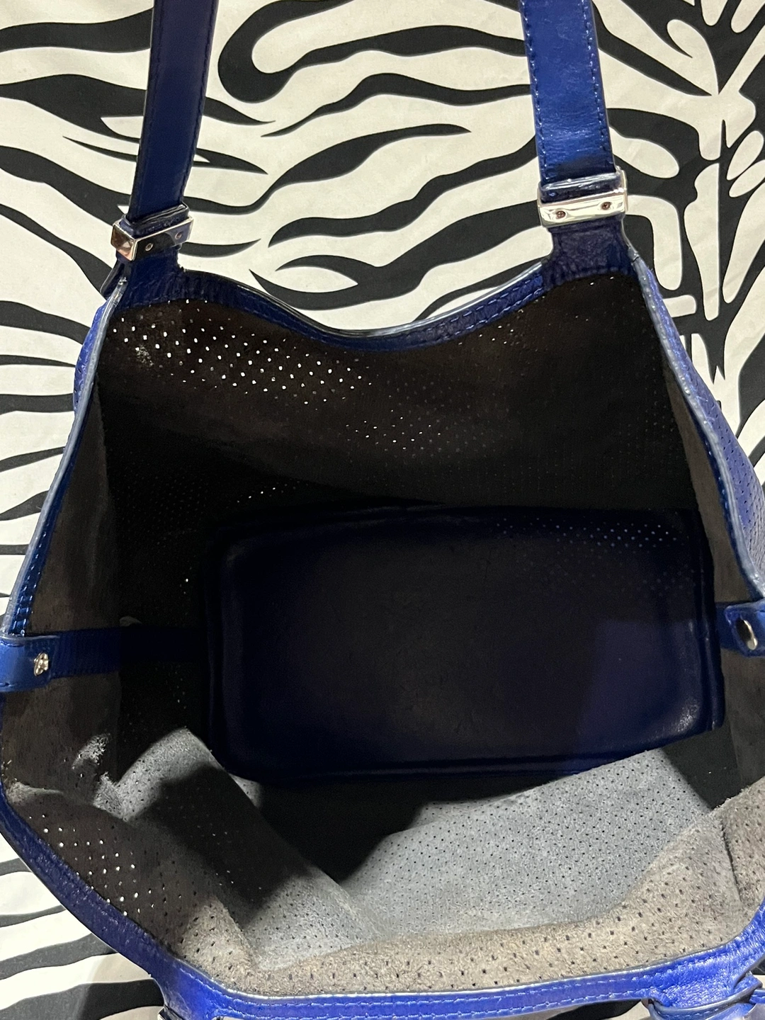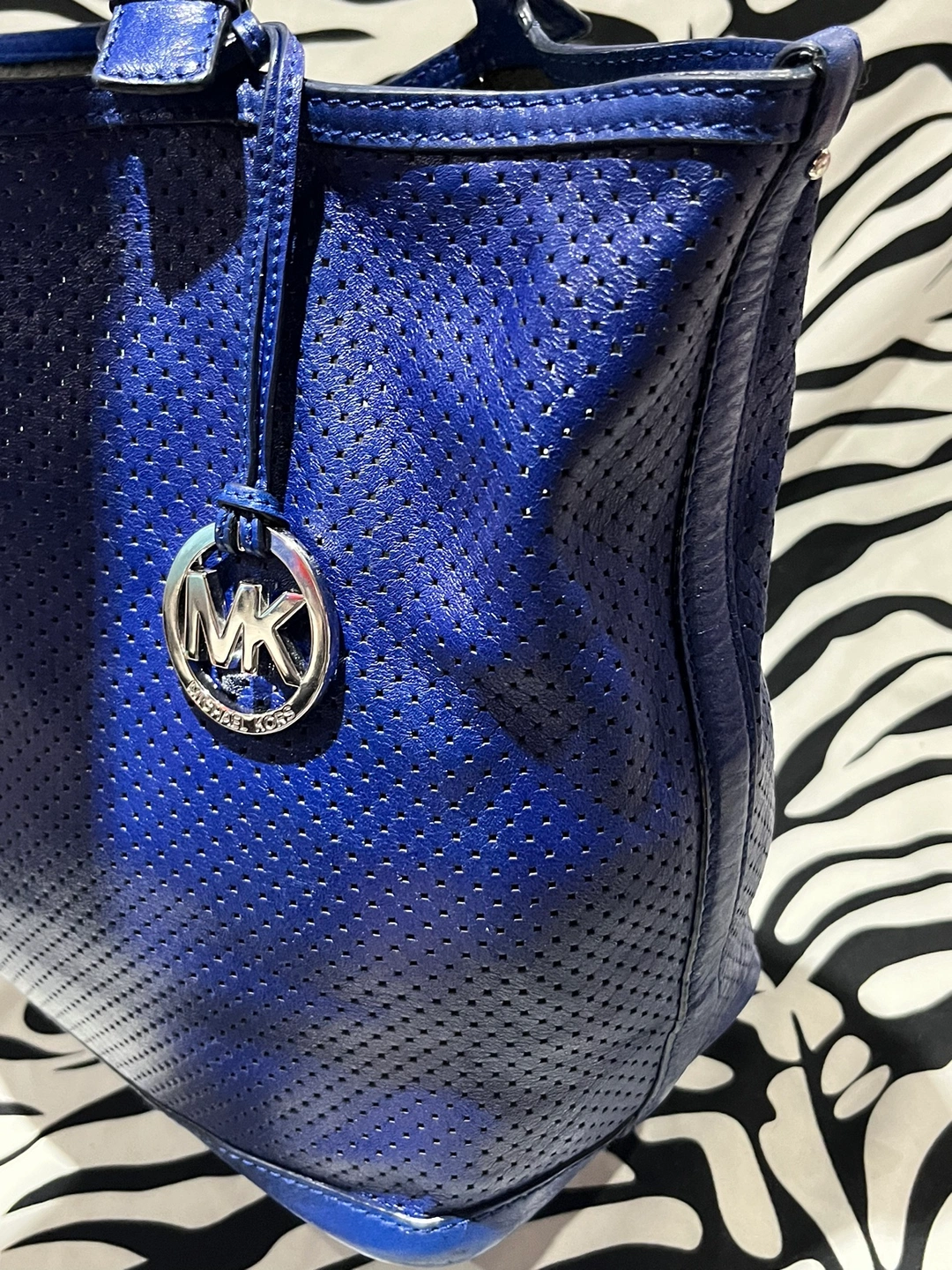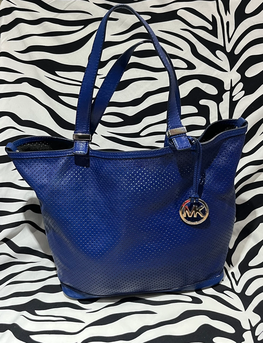Michael Kors Blue Tote Bag Clean interior and exterior Cleaned and conditioned See all photos for reference on size and condition. Pick up in person around Kingston Road and Mccowan weekends or evening or in certain area along the Bloor: Danforth Subway Line Weekdays.