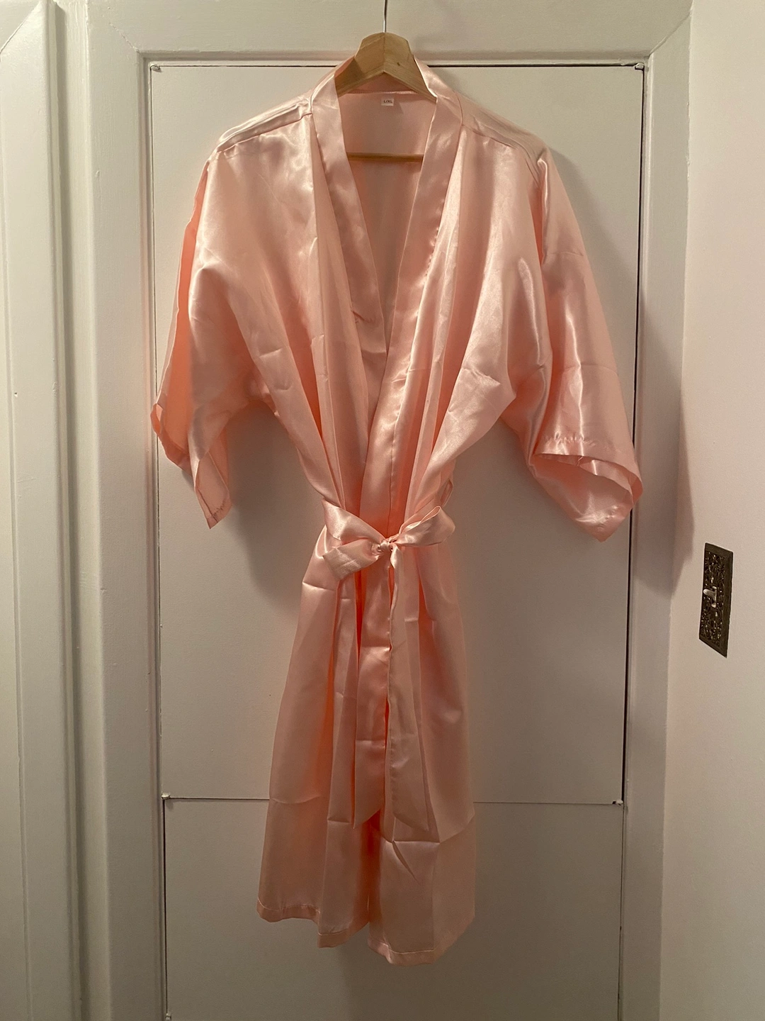 *If it’s still listed, it’s available* •Size: L/XL (see pic) •Material: 100% Polyester •3/4 -sleeved robe with a tie waist •Used for 1/2 hour for wedding pictures •Excellent condition, clean, no breakage •smoke-free, pet-free environment ⬇️⬇️⬇️⬇️⬇️⬇️⬇️⬇️⬇️⬇️⬇️⬇️⬇️ *Location: Jane & Lawrence*