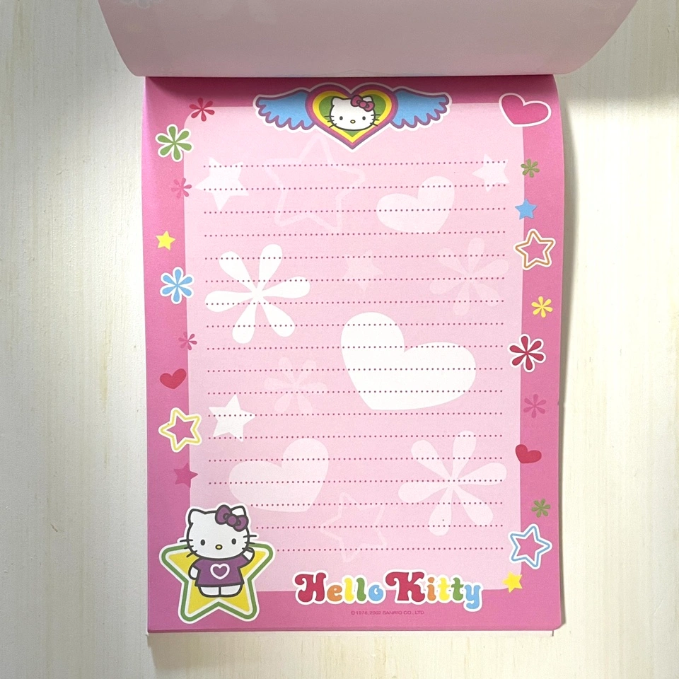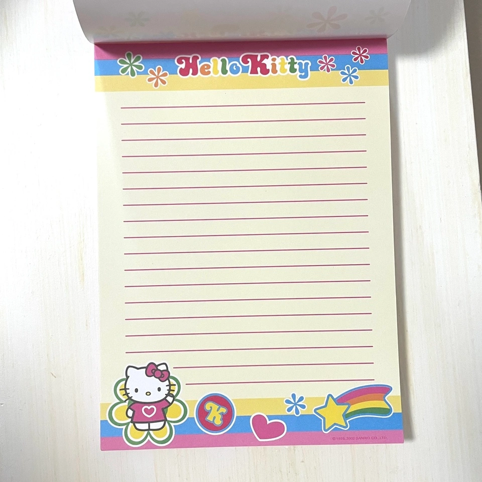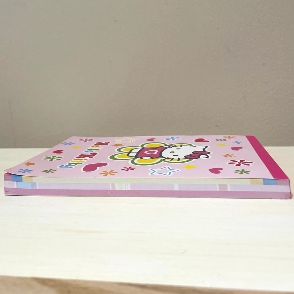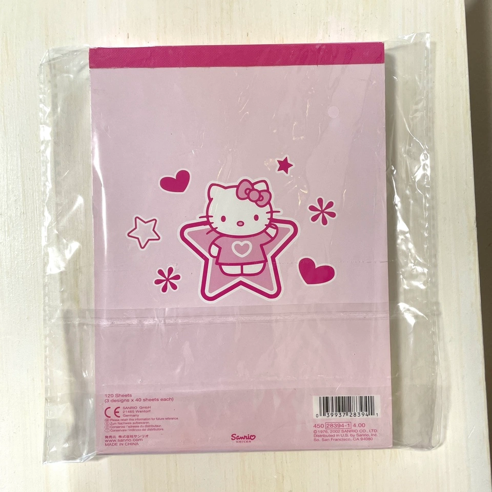 Cute pink notepad with Hello Kitty themed Including 3 different themes A total of 120 sheets Never used so like new. A very minor defect on the exterior corner shown in the last picture Pick up only. Decluttering