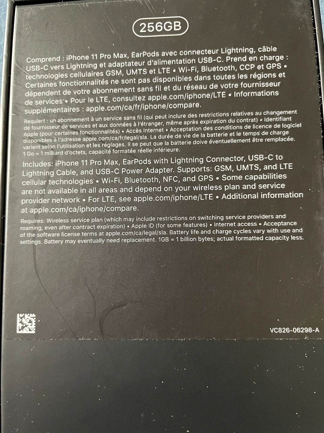 Empty iPhone 11 Pro Max box, 256GB, in good condition. The box is empty and does not include any accessories. This is a great way to store your phone or other small items. Pick up at Don mills Steele east. All sales are final