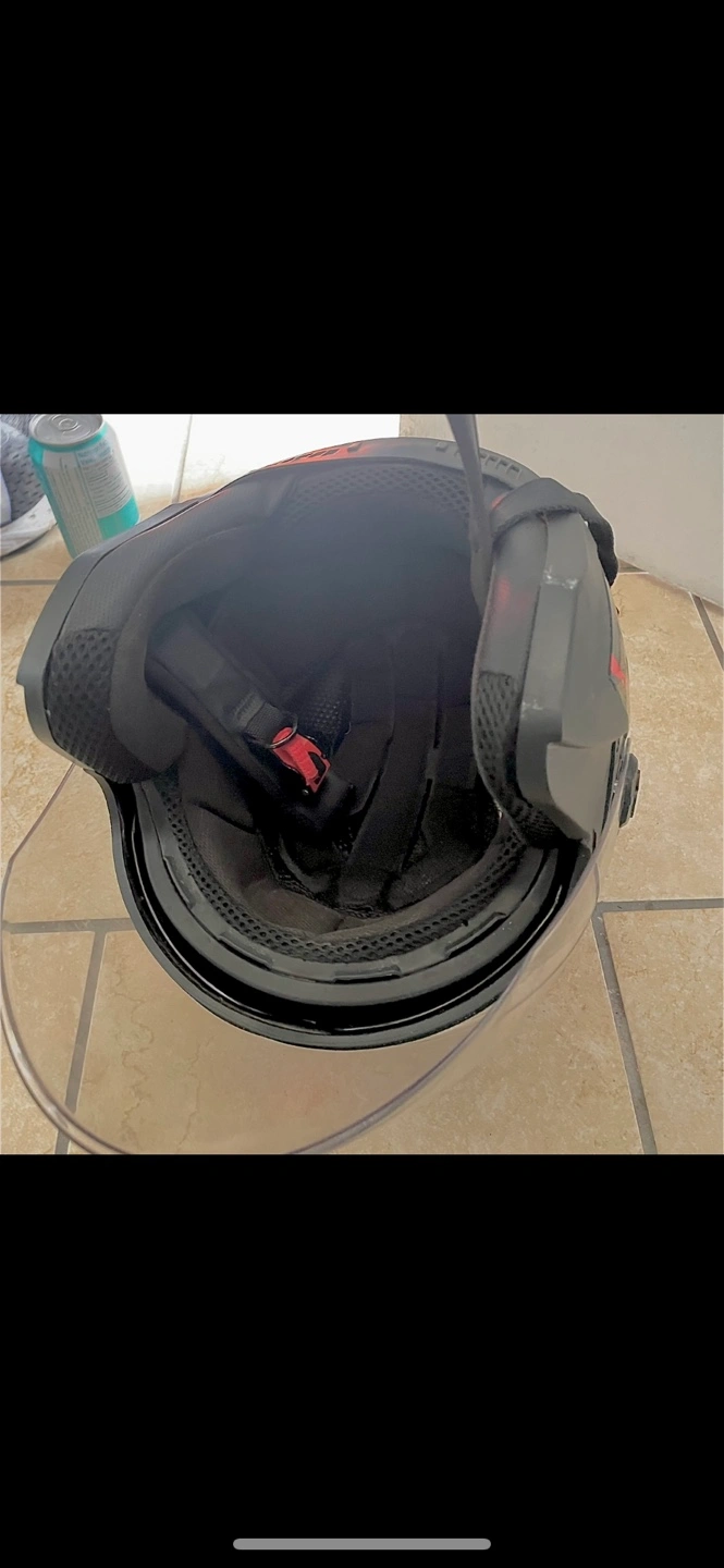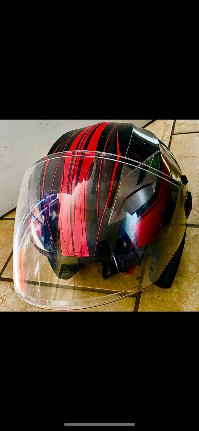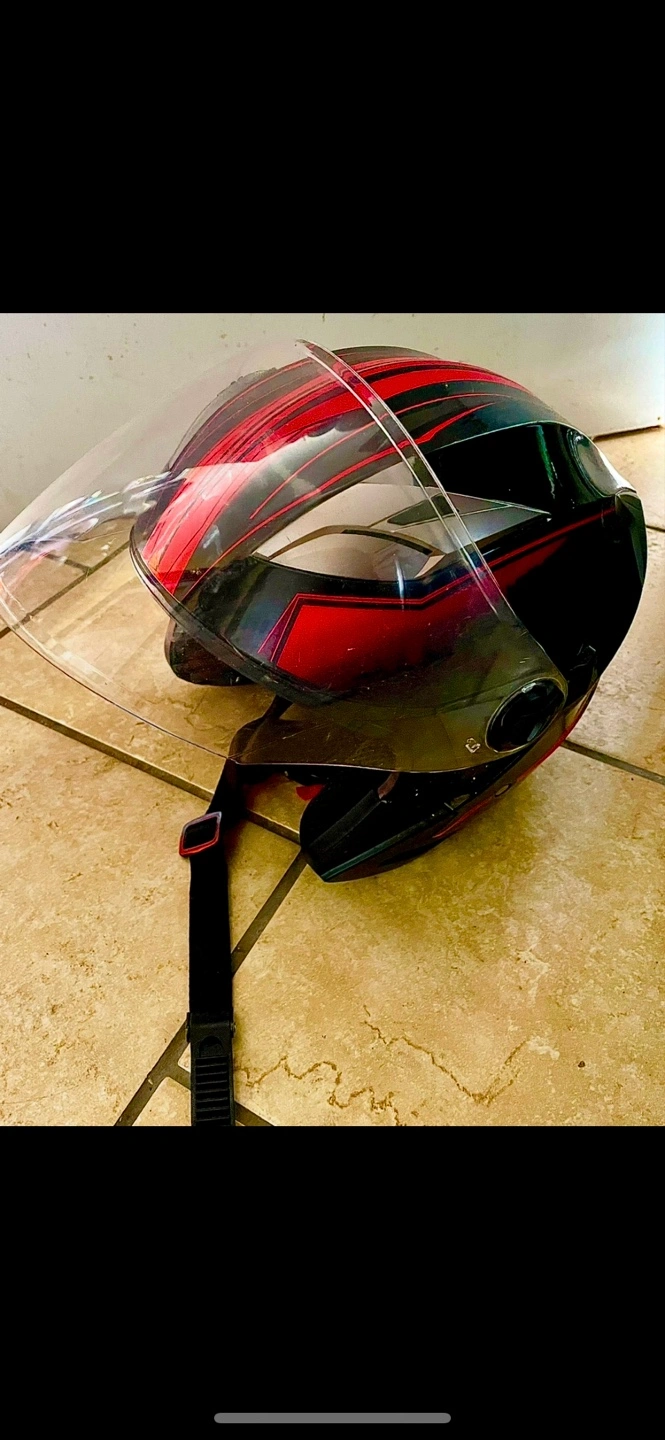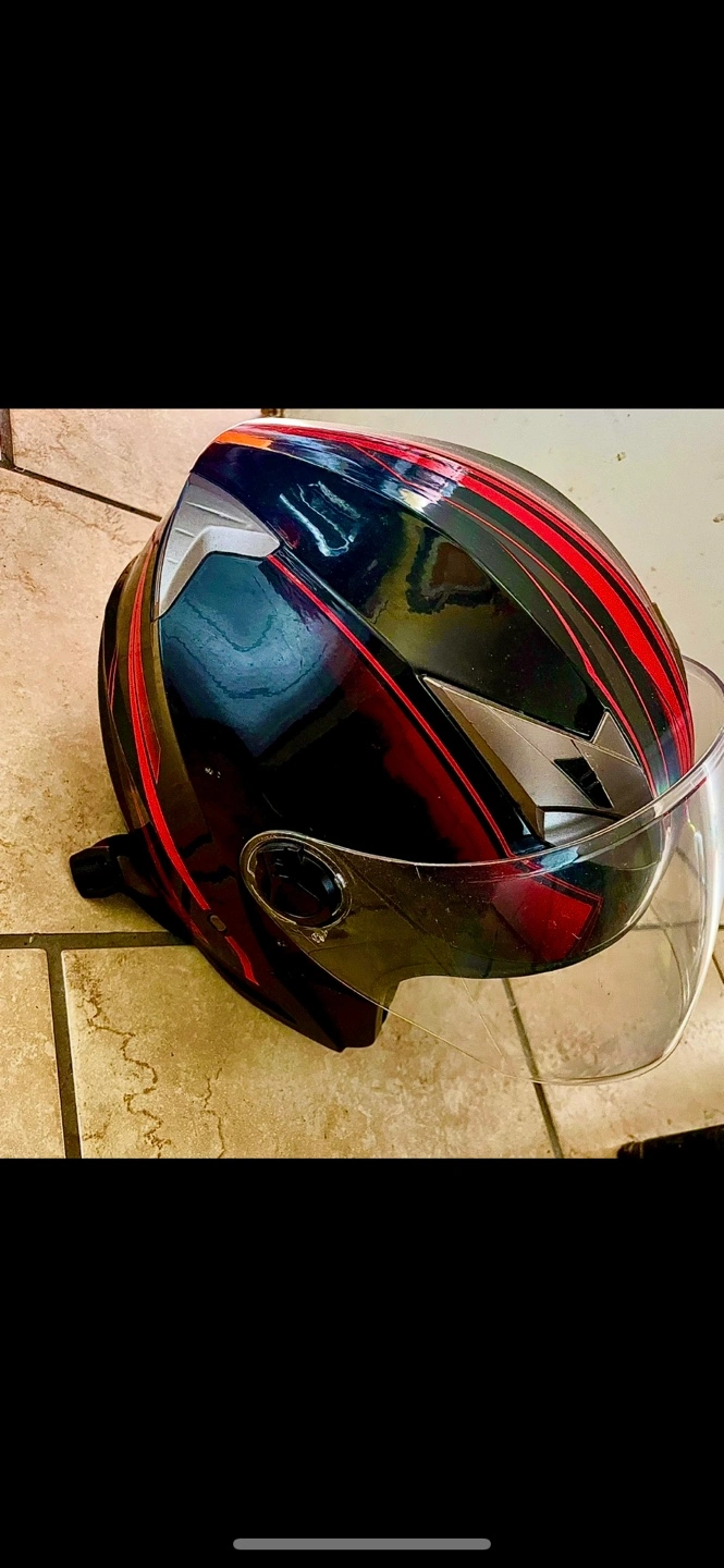 Excellent Condition Black and red motorcycle helmet with a clear visor. Includes Matching Gloves!! (Red & Black Motorcycle Gloves)