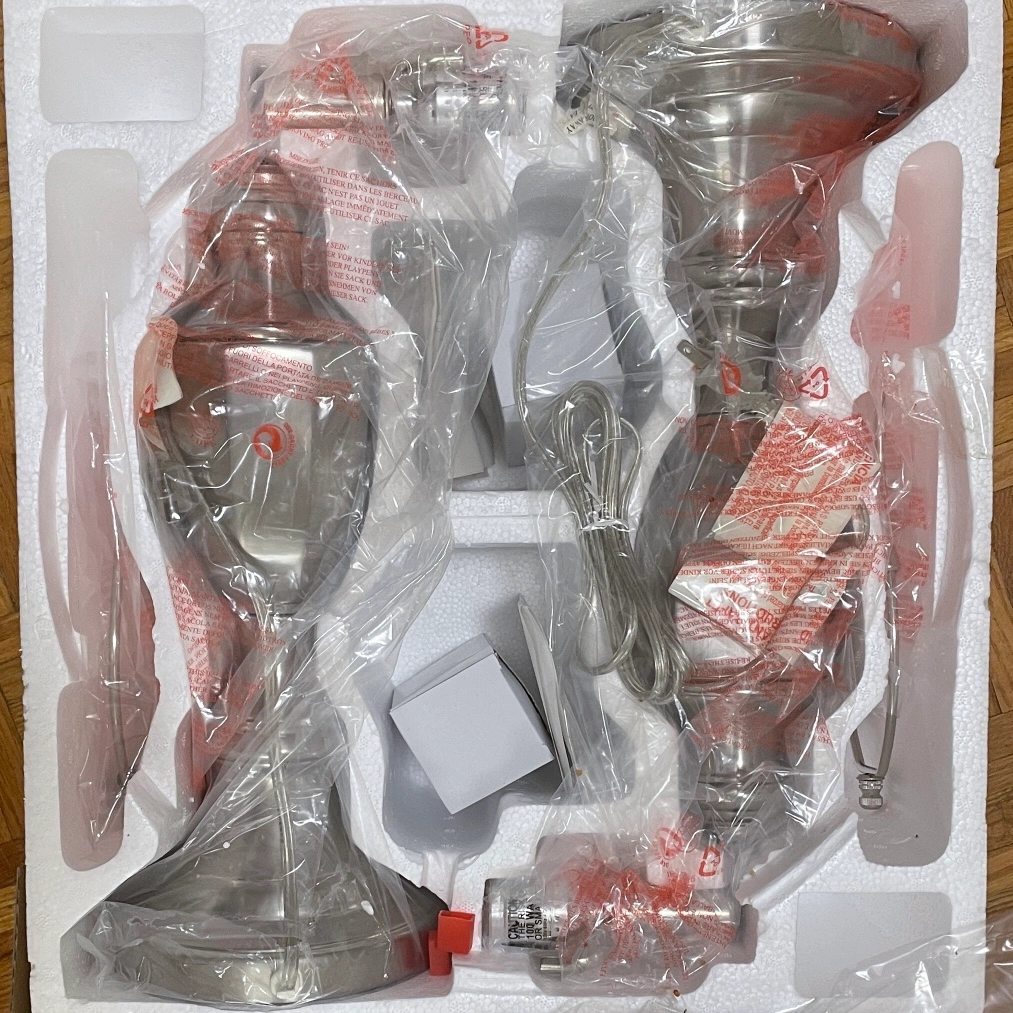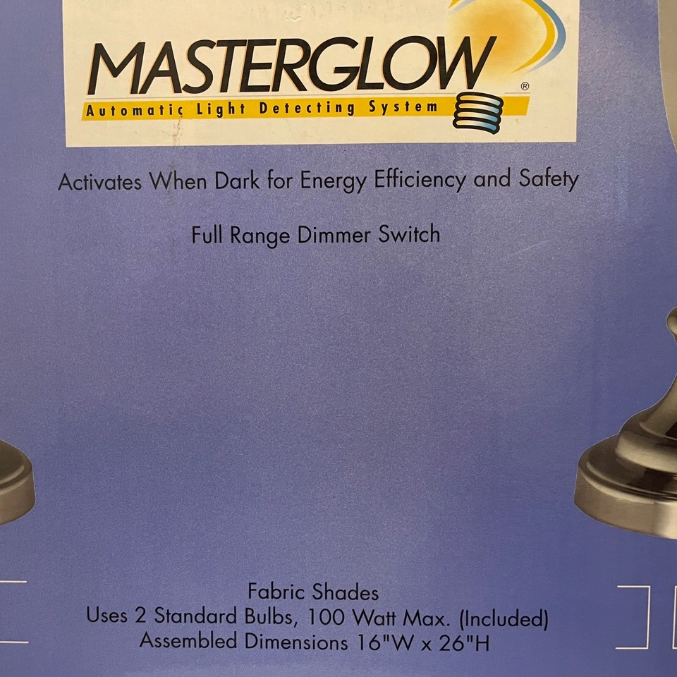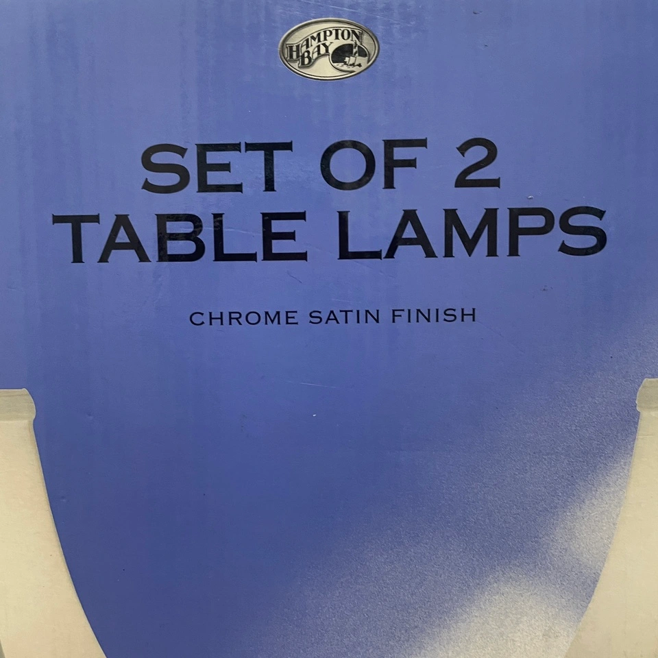 Brand new. Never used. High quality chrome satin finish with dimmer switches and daylight sensors (Masterglow automatic light detecting system) Including 2 soft cream white fabric shades and 2 standard bulbs. Classic and modern lamps for a cozy home Assembled dimensions: 16”W x 26”H Decluttering. Delivery possible with a fee.
