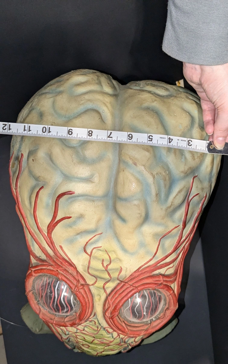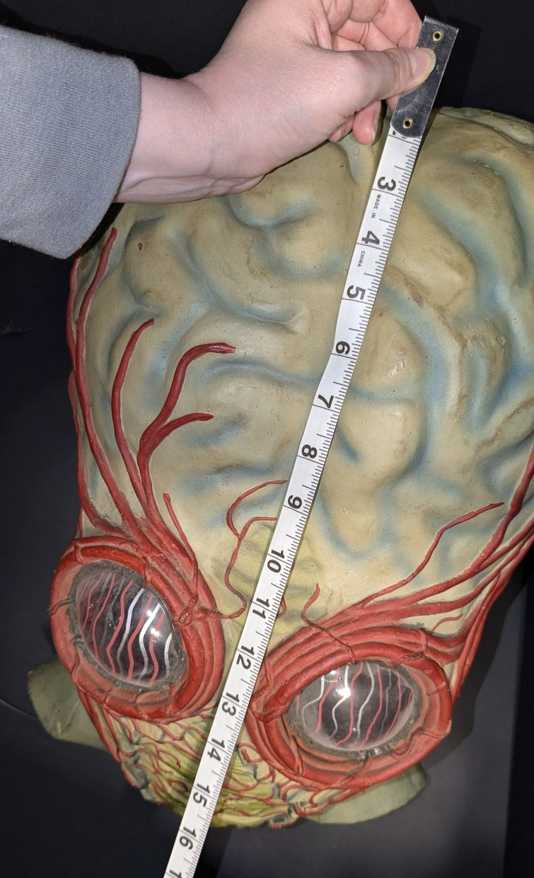 Wow! Can you believe you found this GEM in CALGARY? What a find! A one-of-a-kind item from Universal Studios and Don Post Studios. Just in time for Halloween! Get ready to step into the world of classic sci-fi with this incredible Metaluna Mutant monster mask from the movie This Island Earth. Made for fans of 1950s cinema, this wearable collectible is sure to make a statement at any movie memorabilia collection. With its huge size and original design, this full color heavy flexible rubber (we think) mask is a must-have for any movie buff looking to add a unique piece to their entertainment memorabilia. Get your Sci-Fi freak on and have some fun. This mask is wearable or you can put it on display in your home. Please note that if you choose to wear the mask, your visibility will be limited. This item is definitely huge and heavy. This item is not cheaply made. This is a quality item. We think it is made of rubber which lends to the weight of the item. This is a very hard to find item. For fans of this series this is a must-have. The dimensions of the mask are roughly 16 in x 12 in. I have tried to give close-ups of the amazing detail of the mask and of the interior of the mask. Thank you for viewing our listing. Please feel free to ask any questions or ask for more photographs. We are happy to answer any questions or concerns that you may have. This is cross posted on multiple platforms. Smoke-free home. Kind regards, T&L