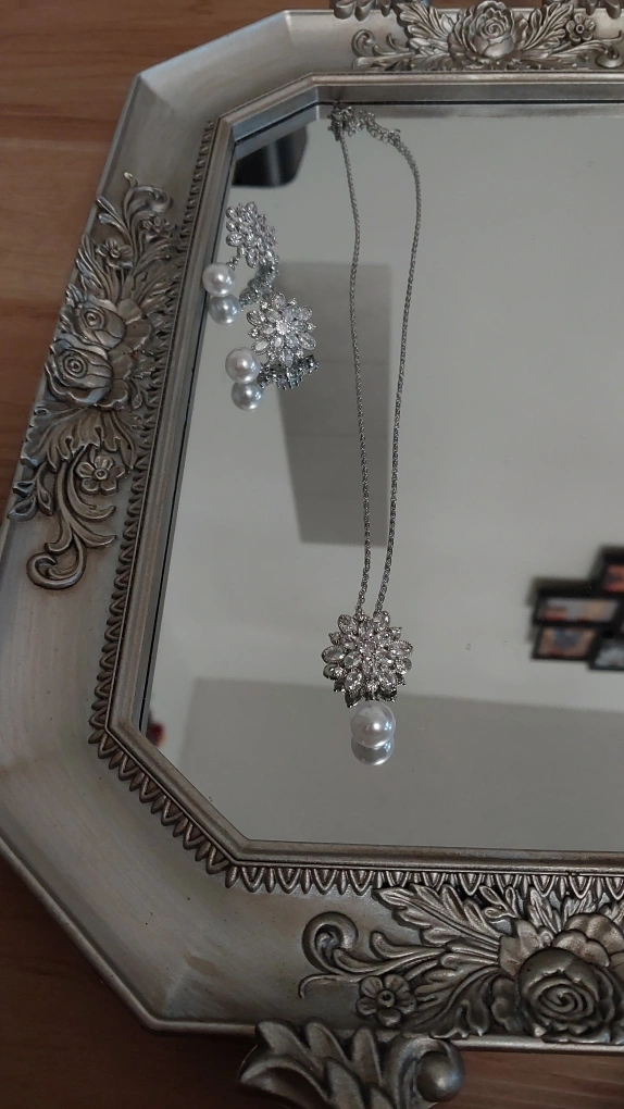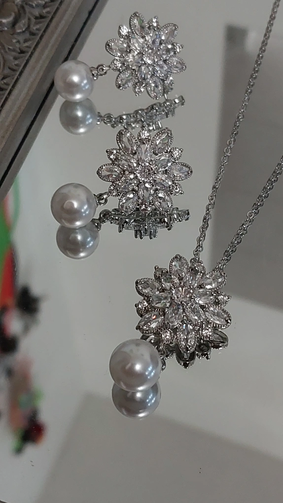 3pcs Sunflower Faux Pearl & Cubic Zirconia Necklace and Stud Earrings Set - stunningly beautiful Smoke free and pet free home Kindly note all sales are final and no return or refund Feel free to check my other listings ๐