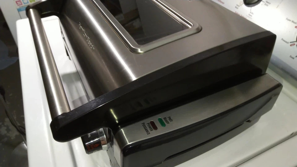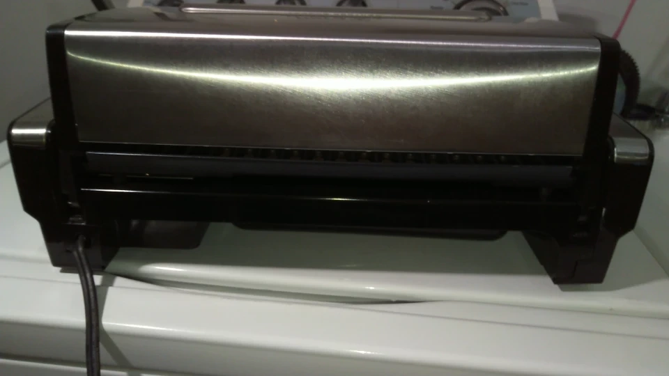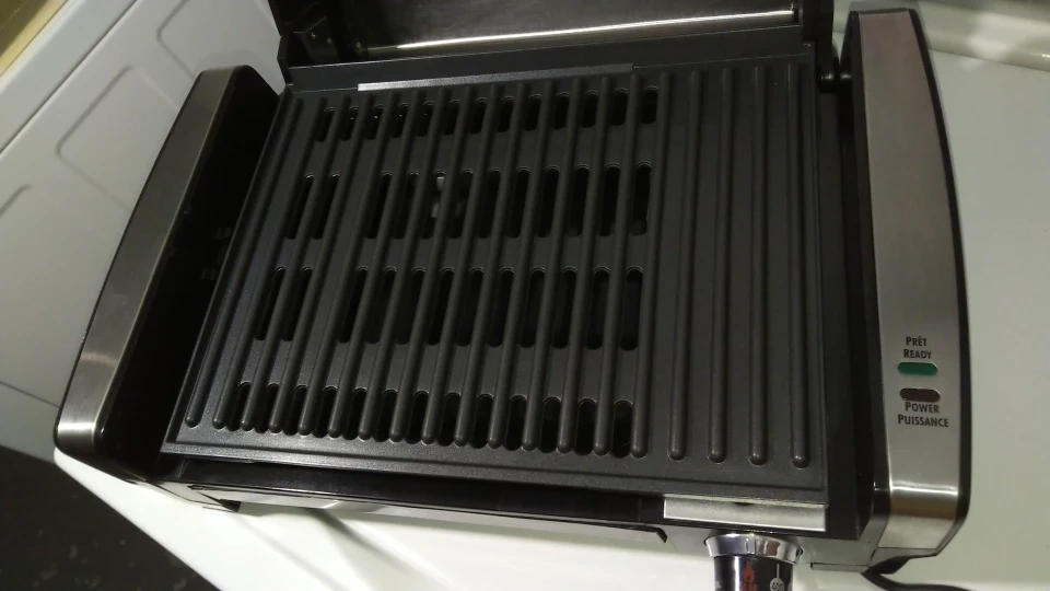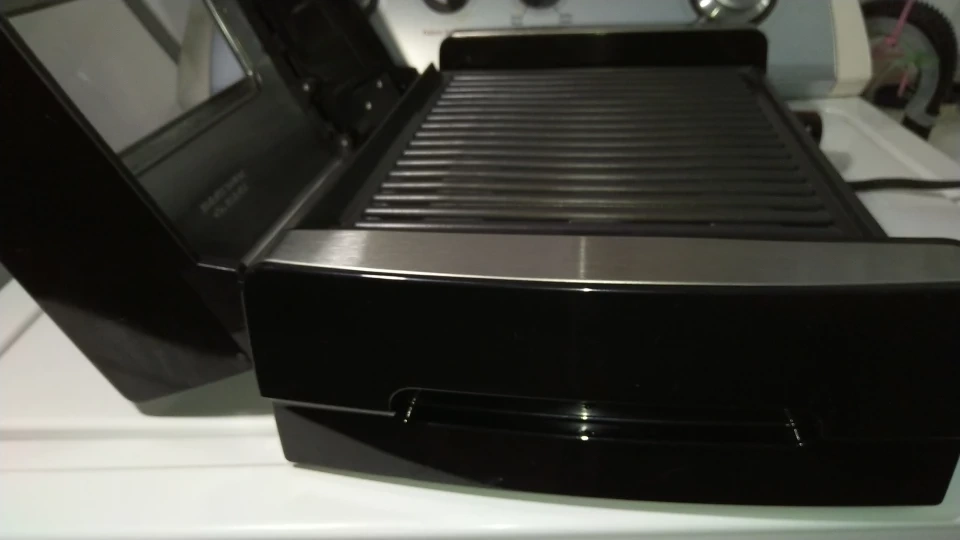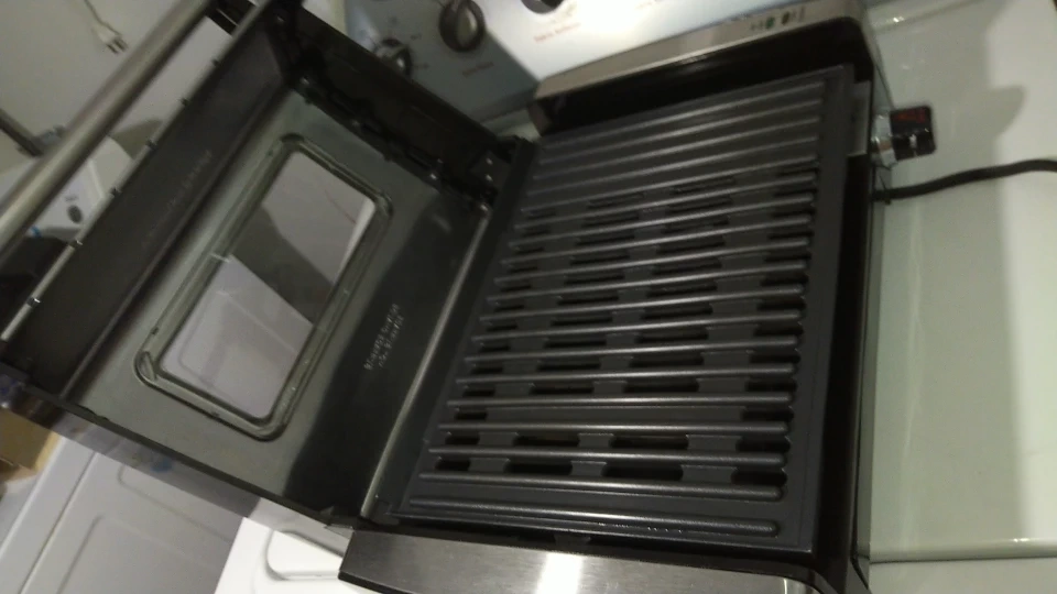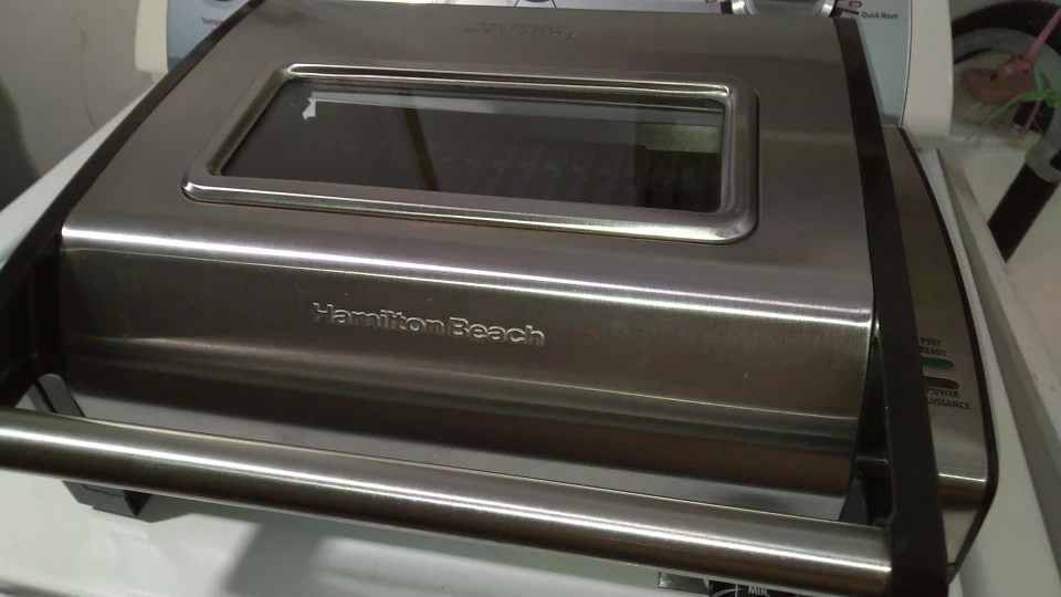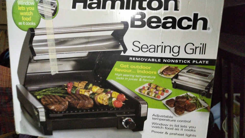 This is a Hamilton Beach electric grill. It has a temperature setting of 210 to 400 degrees Fahrenheit. The grill has a drip tray that is easily removed for cleaning. It also has a window so you can monitor your food while it cooks this has been used. model: 25361c. has been used a few times