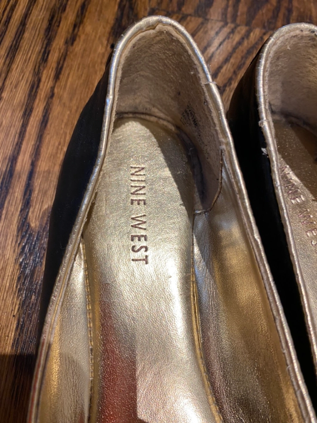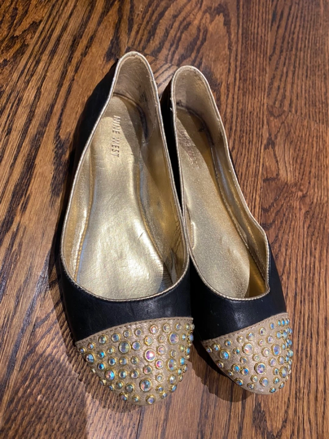 Women’s Nine West flat shoes size 8. Black and gold with jewels / comfortable / great condition / worn only a couple of times.