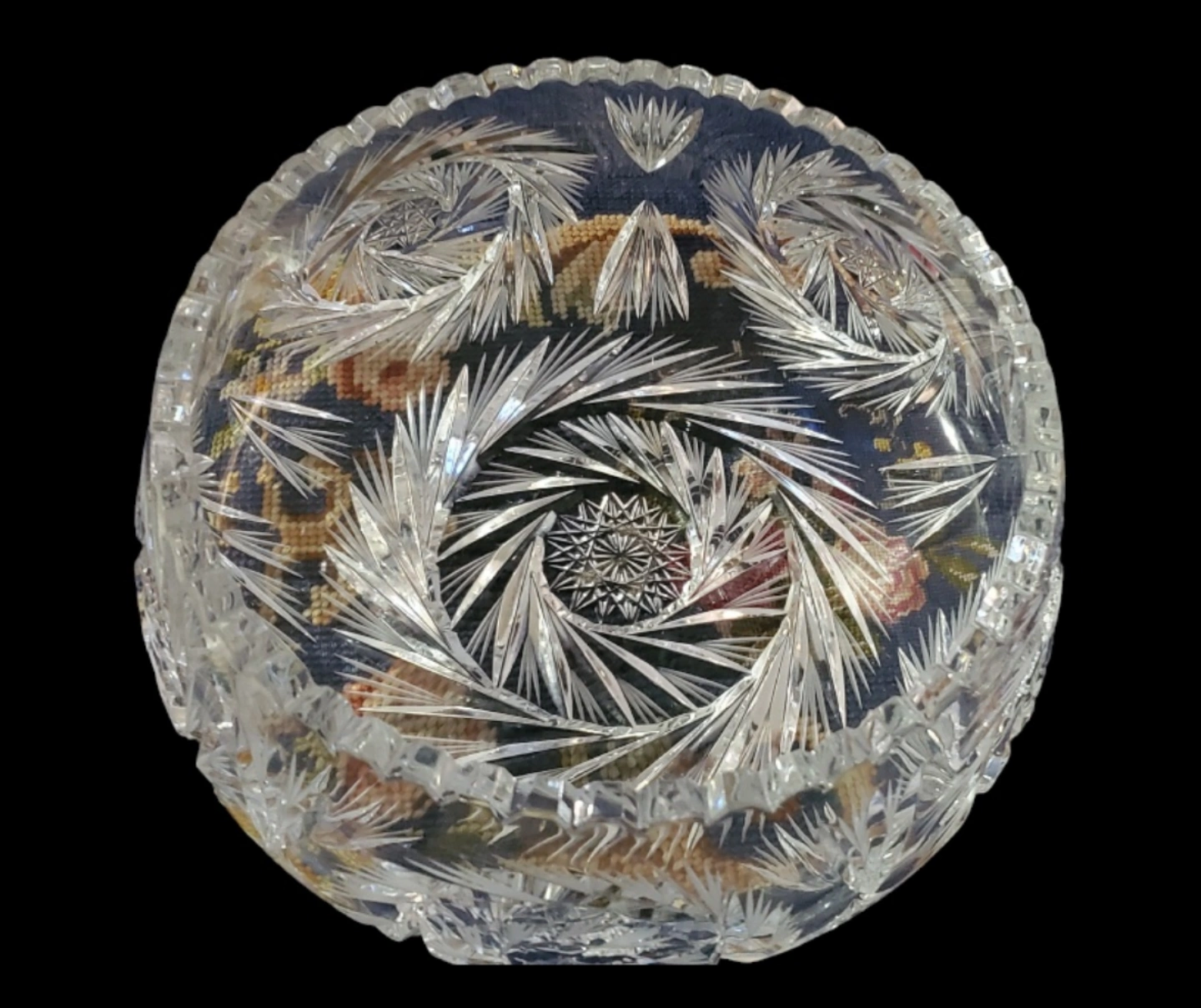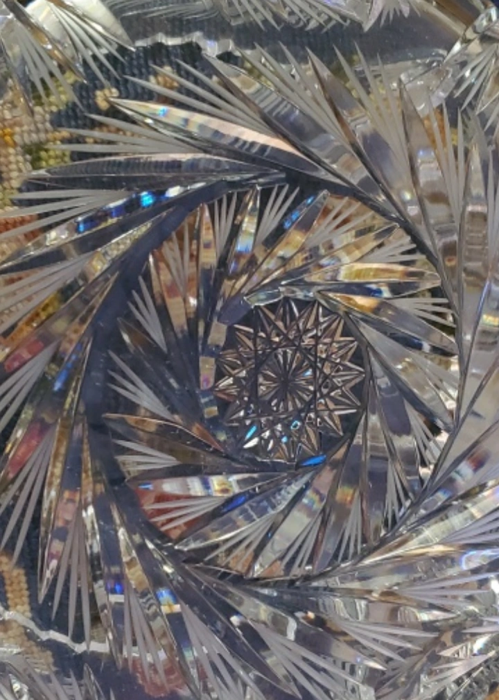 Beautiful vintage large crystal bowl. Intricate cut design, scalloped edge. Made of crystal cut. Has weight on it.