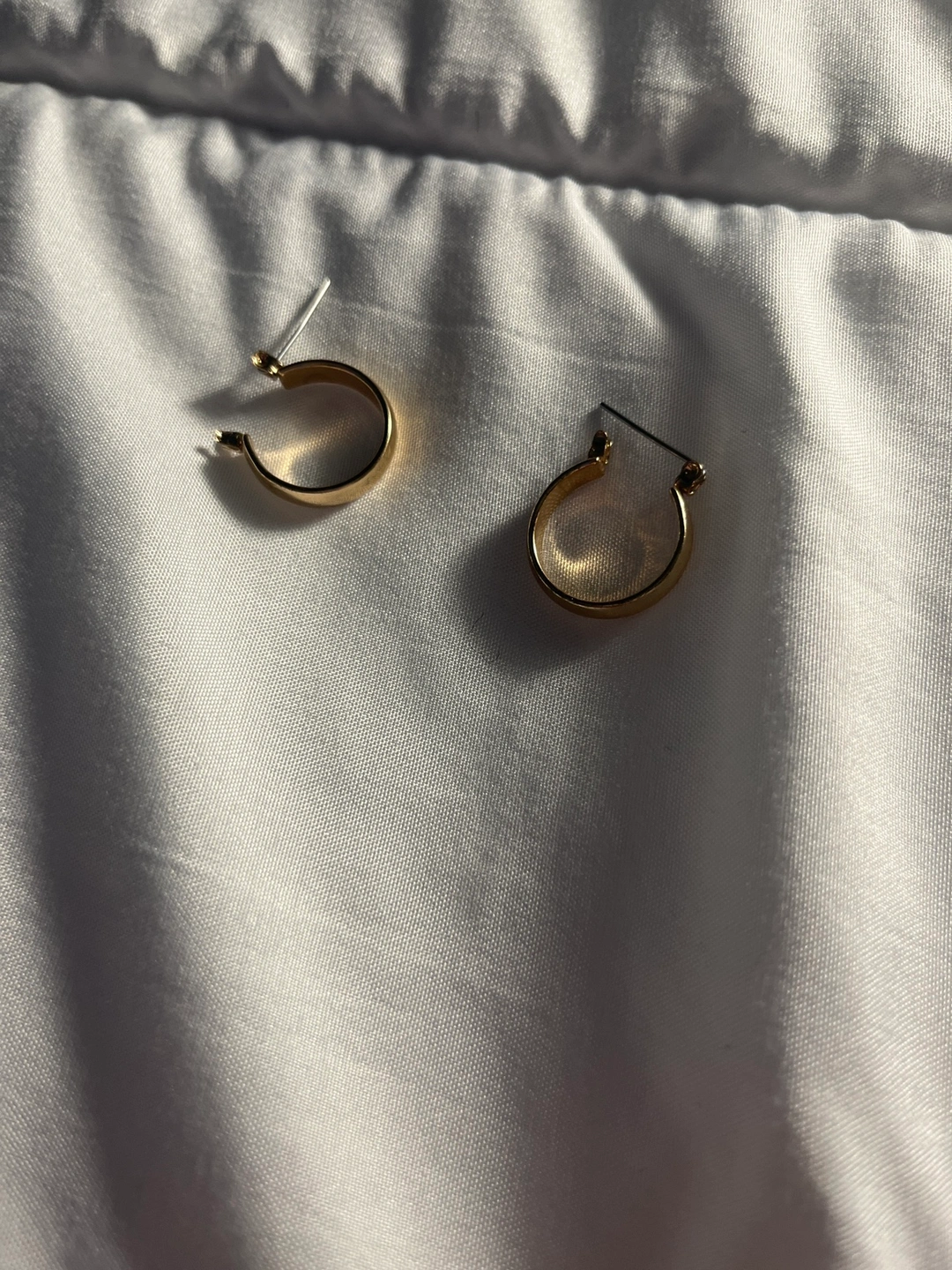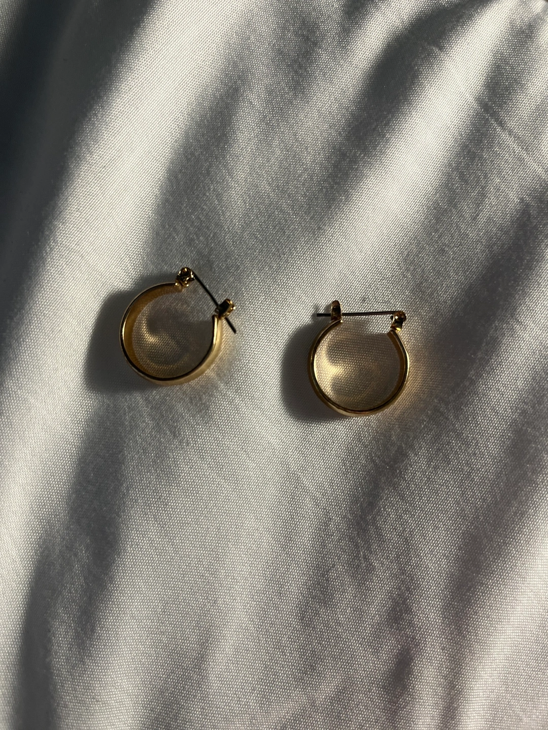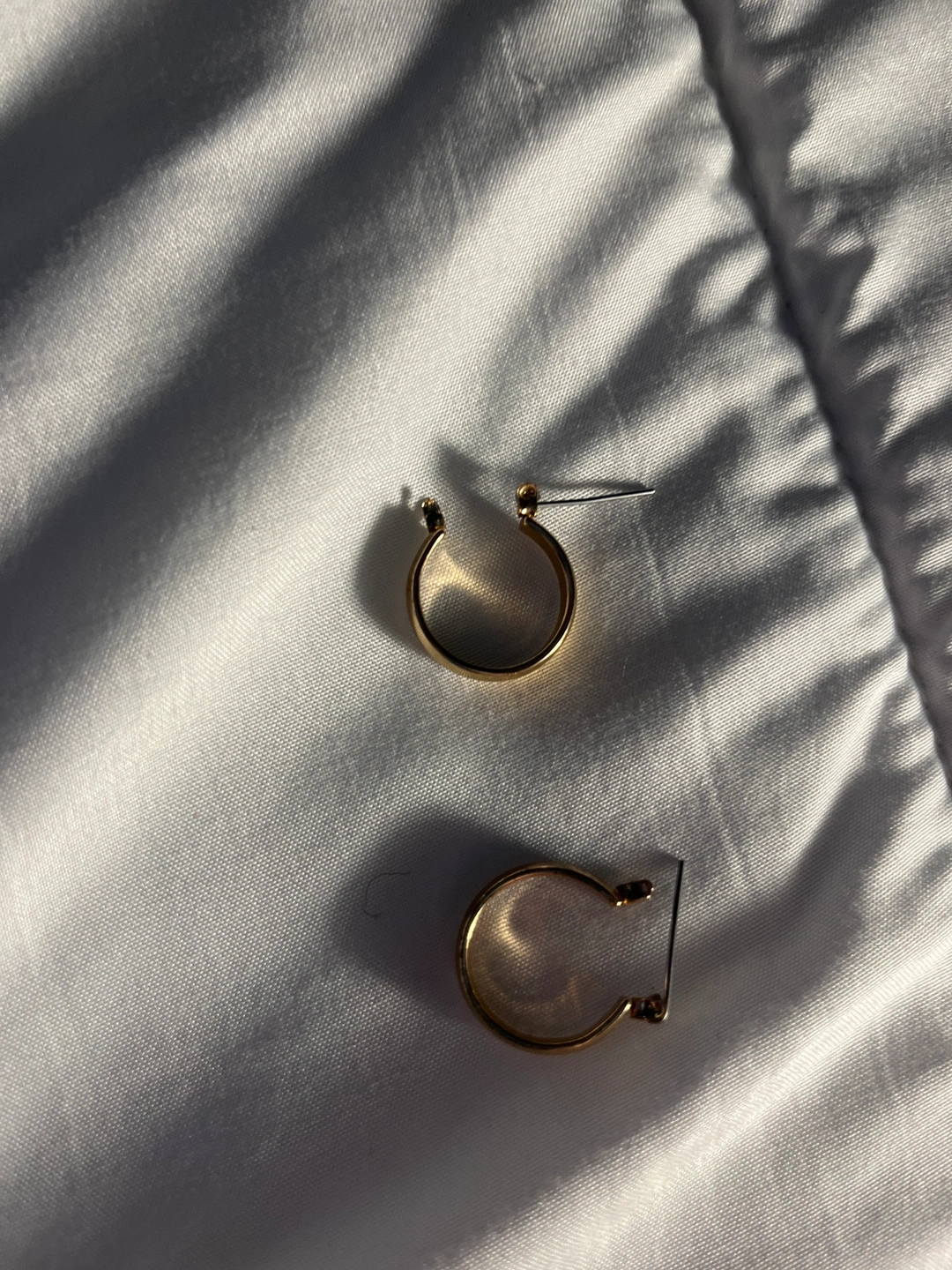 Gold hoop earrings. Small and simple. From garage hypogenetic.