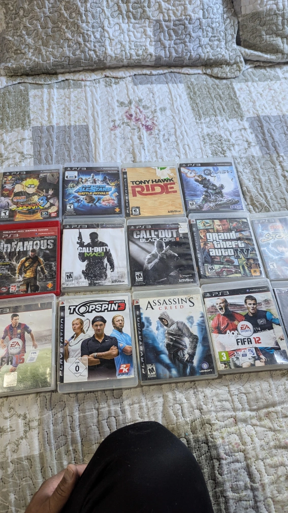 Bundle of PS3 games. Includes: Infamous, Naruto Ultimate Ninja Storm 3, Tony Hawk Ride, Skate 3, Call of Duty, Call of Duty Black Ops, Grand Theft Auto IV, Top Spin 4, Assassin's Creed 2, FIFA 12, PlayStation All-Stars Battle Royale, FIFA 15 all $55 each $ 8 1 sold call Duty Black Ops 2