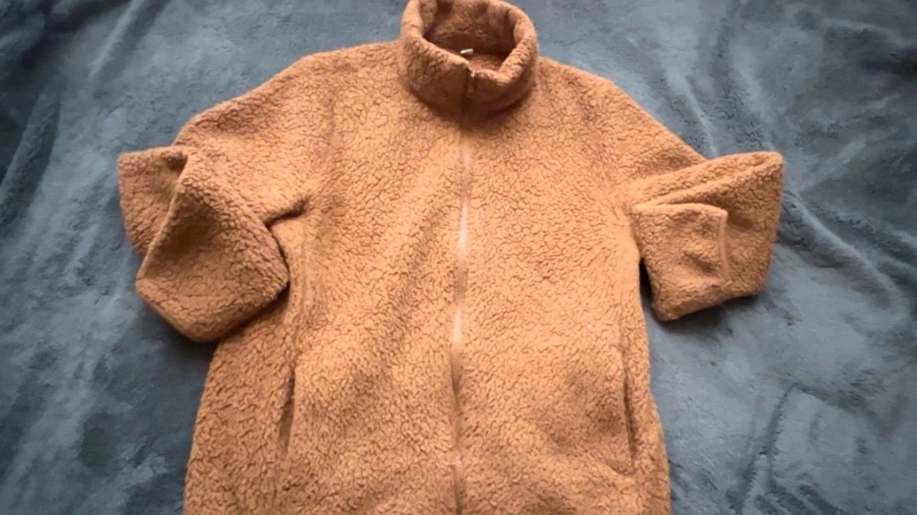 Soft brown sweater with a zipper closure. Great for colder weather.