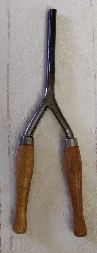 Vintage hair curling tongs with wooden handles. In good condition. From a smoke-free pet-free home