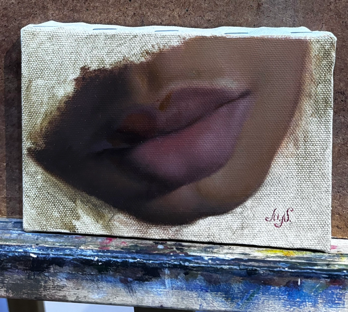 Small oil painting on canvas. Mouth study. Signed. Perfect stocking stuffer for an art lovers. Gloss varnish finish. 4x6” Certificate of authenticity is available upon request. Firm price.