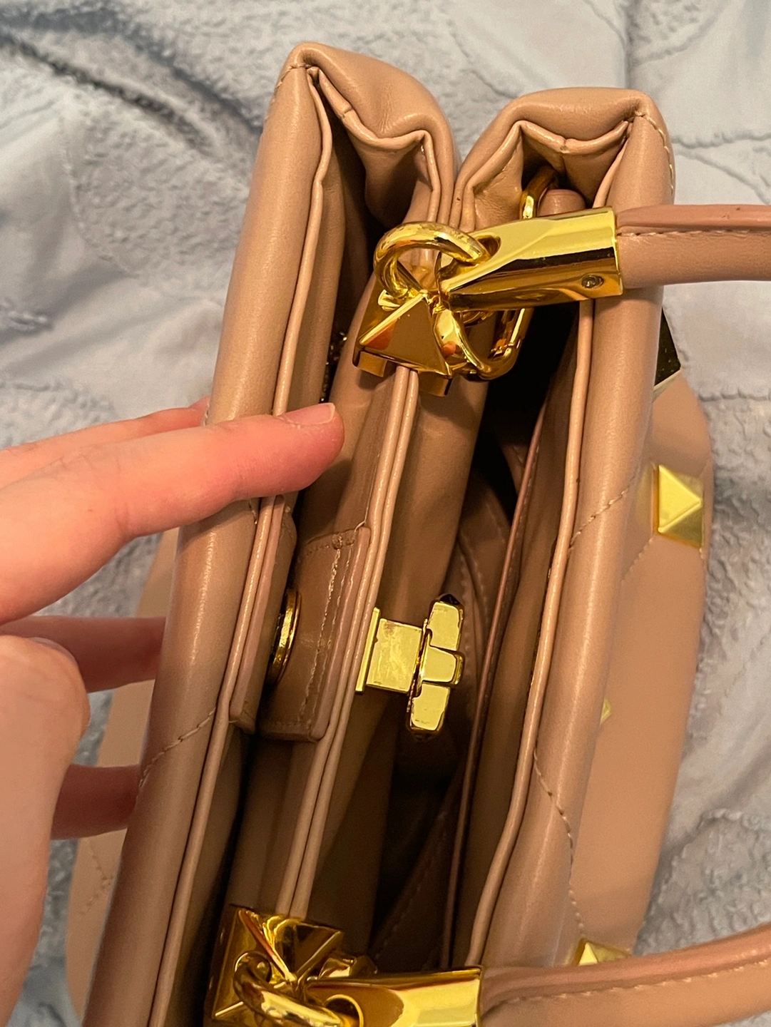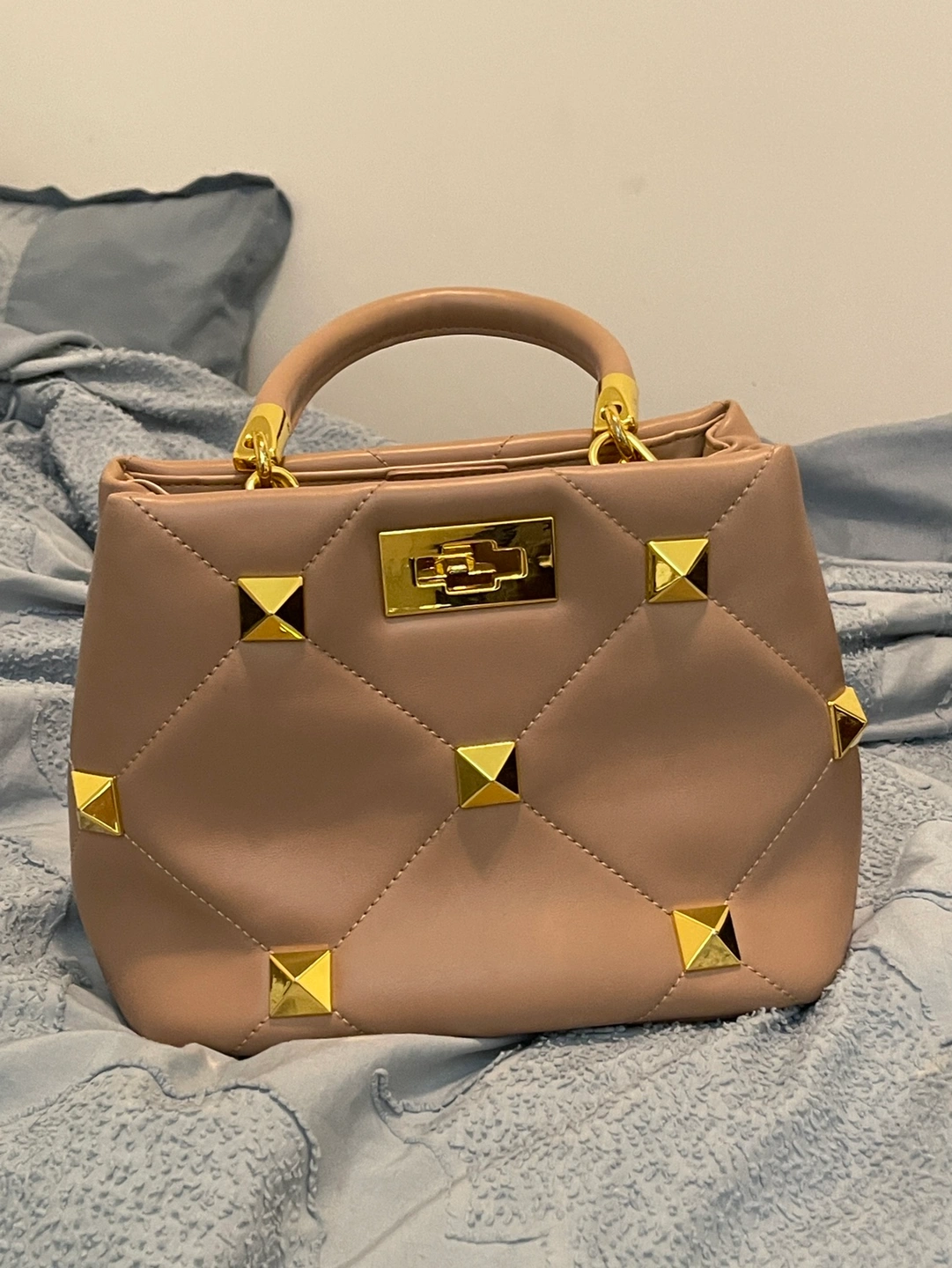 Small, quilted handbag with gold accents and hardware. Has a top handle and a detachable shoulder strap. Features Valentino newly launched edition. The handbag is in such a great condition. Only the goldwear has some signs of wear as seen in the last pic. Check out my other listings and get huge discounts!