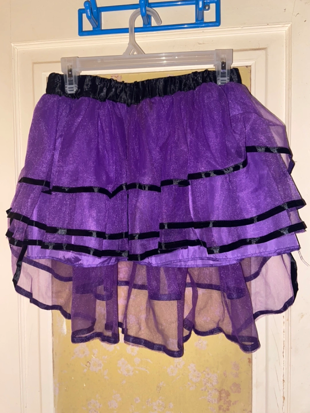 Condition- worn a few times. In excellent shape. Size- one size Colour- purple and black Adult size Style- long in the back Approximately length 19 inches back 13 inches front Payment- Cash No Refunds / Exchange No try ons, No trading No holds. All purchases are Finally Sale From a Smoke Free home First come, First Serve Price-$10 Pick up- Located in East York, Toronto