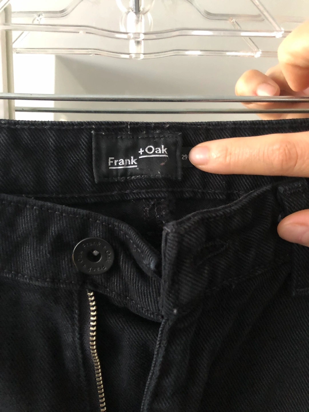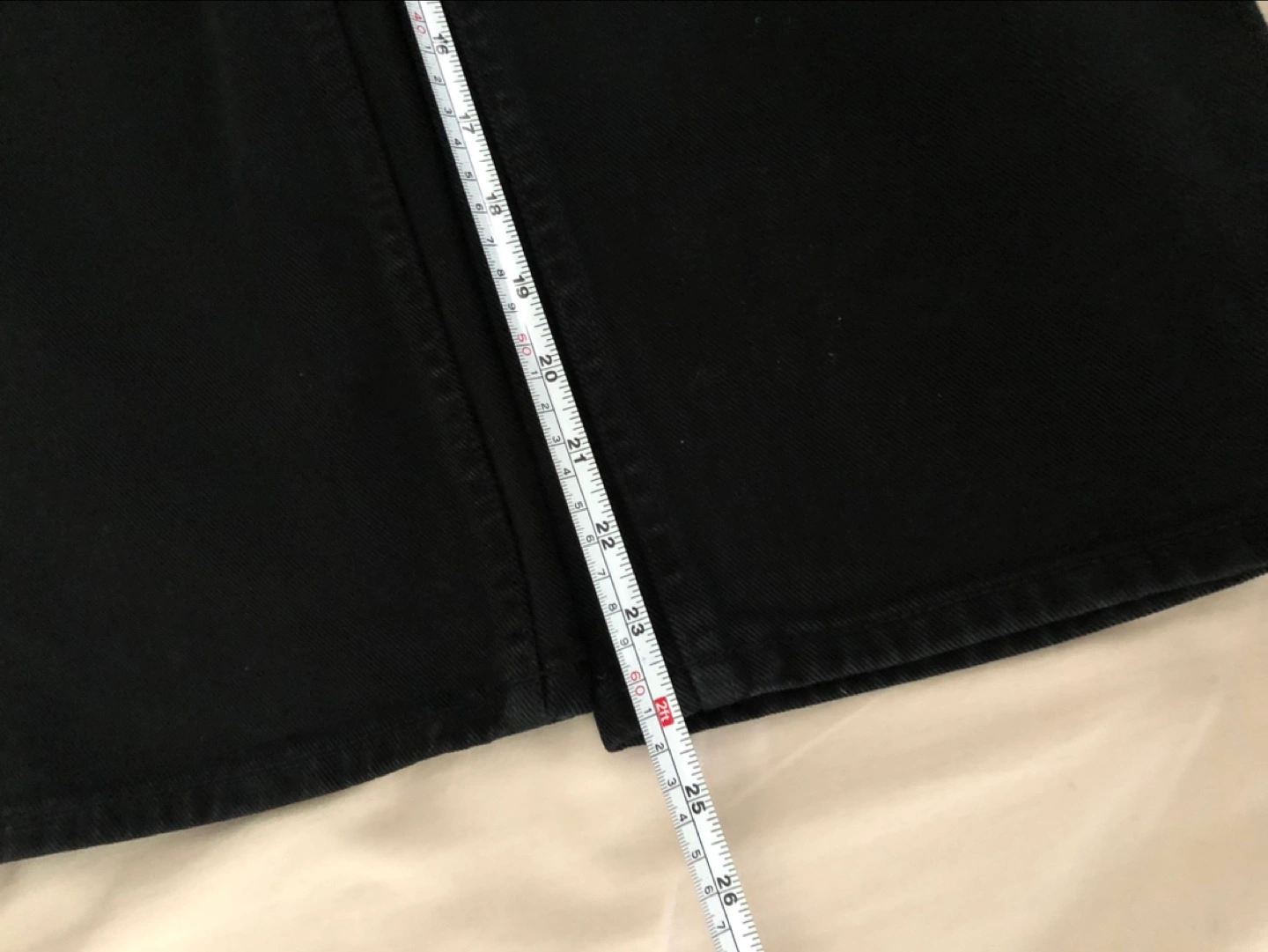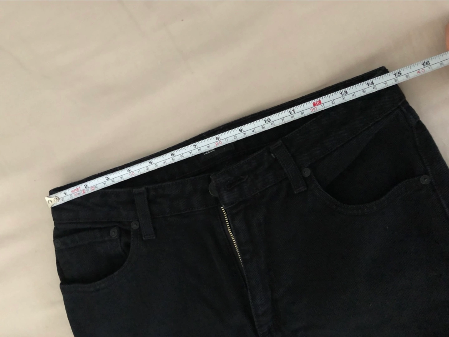 Black jeans with a straight leg and thick denim. They are very cropped (24” inseam)! Sturdy construction lol the zipper, button, and overall fabric feel like they can stand A LOT of wear and tear. Only worn once, it’s just a bit too small :(