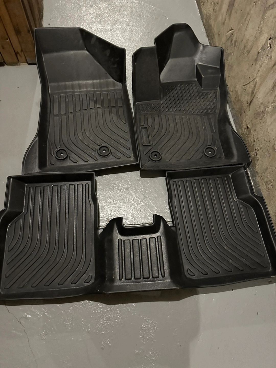 Set of four black all-weather floor mats. For jeep cherokee They are in good condition, and include a driver's mat, passenger mat, and two rear mats. Bought it for 250$ used like new selling it for 50$.