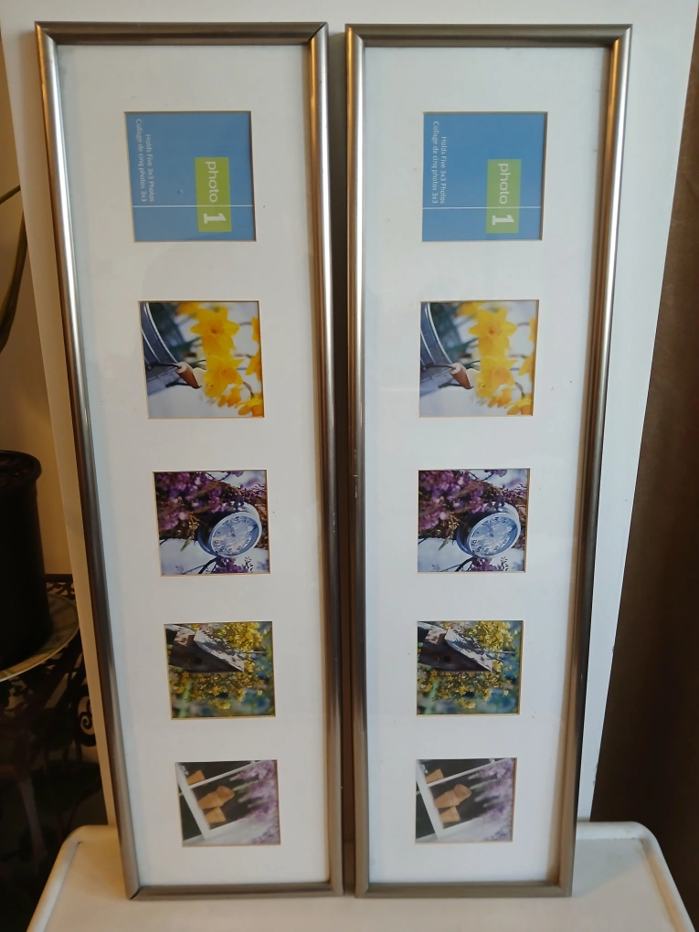 *If ad is up, it's available* *Pick up and cash ONLY* *NO trades or bargaining* *Pick-up location on post* ✅️Both $12.00. Set of 2 silver picture frames, each holding 5 3x3 photos.