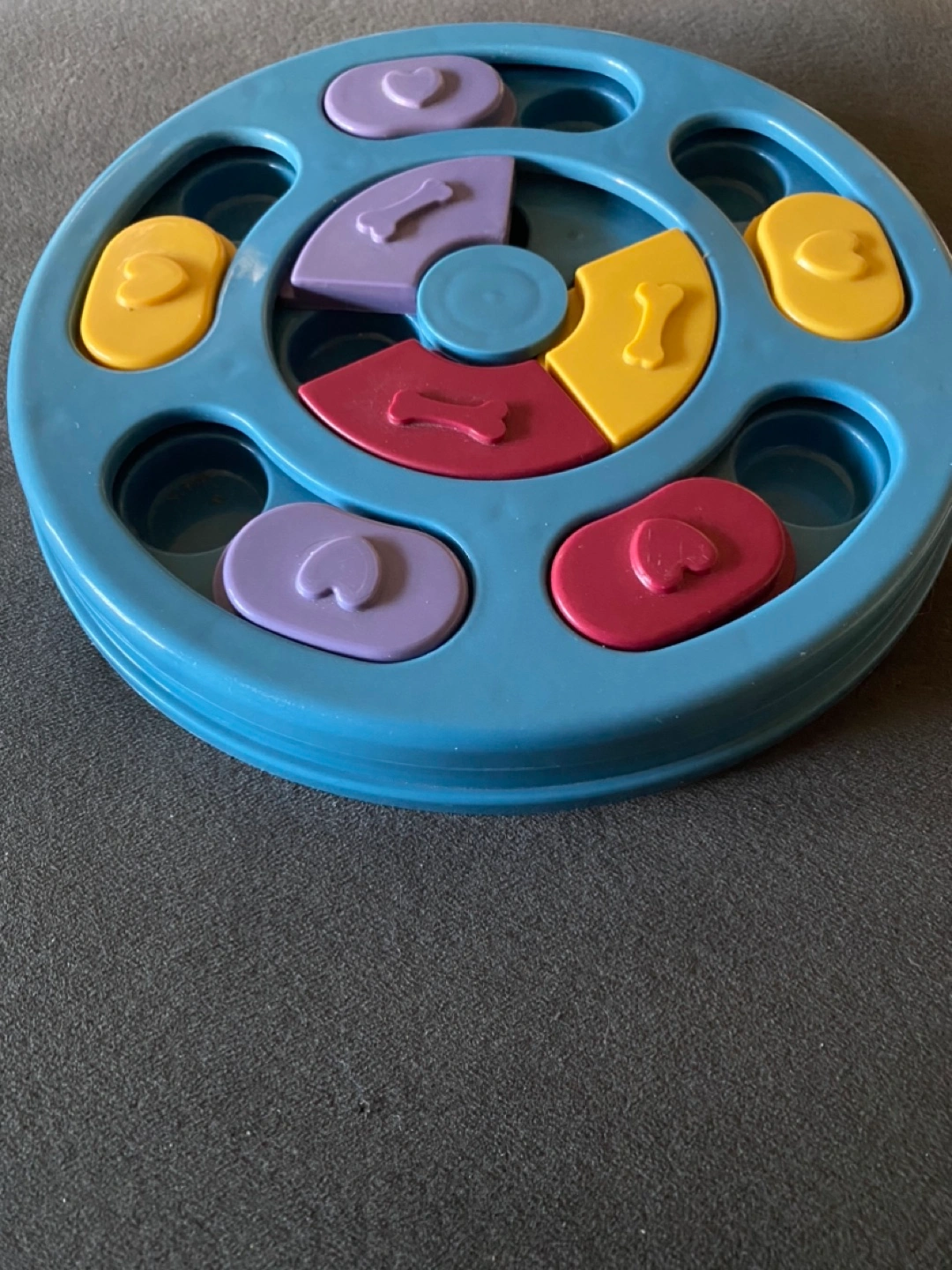 Interactive dog toy with hidden compartments to place treats.