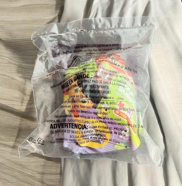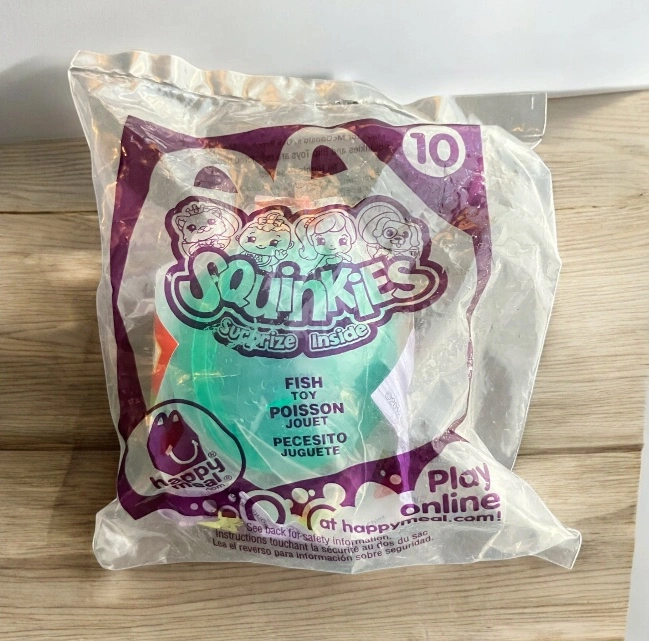 New in sealed bag McDonald's Happy Meal toy from 2012 Squinkies "Fish" This is toy 10 in the series. The first pictures show stock photos of the toy outside of the bag. The last 2 pictures show the actual toy in the bag sealed. I ship using recycled material within my home to reduce waste. The package will be wrapped with care if requested or deliver for a fee