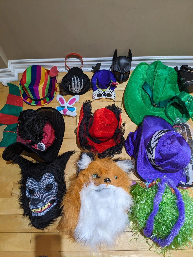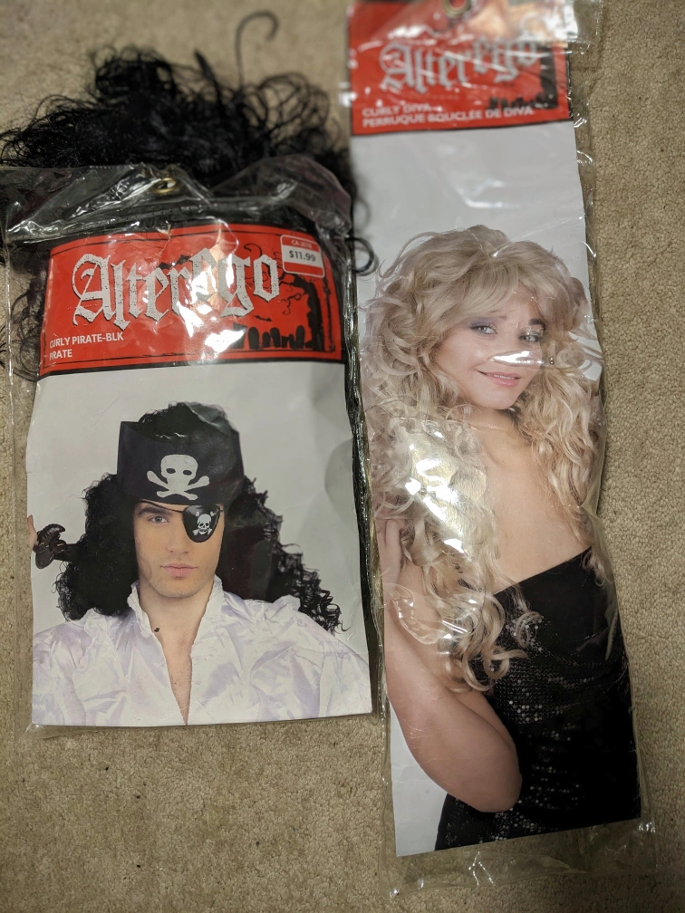Each $5-$25, Costume ( adult size ), accessories, wigs, and full costumes. Includes: bear head, tail, and paws, alien mask, skeleton gloves, pirate wig, blonde wig, and more.
