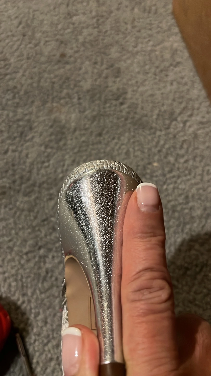 Silver lace high heels. Open toe and open back. Great for a special occasion.