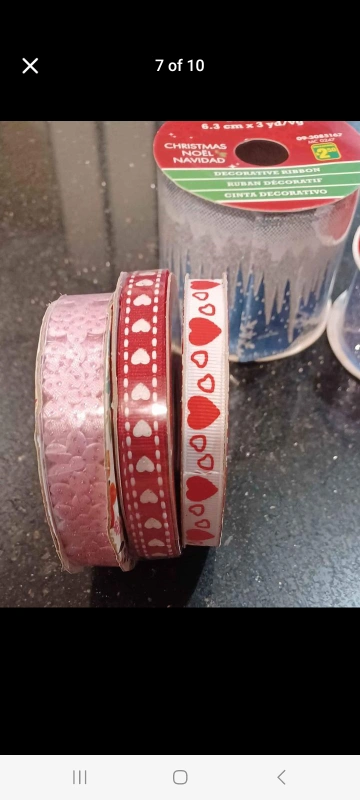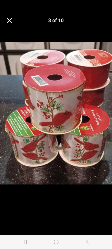 Assortment of Christmas ribbon, all new in packaging. Various designs including hearts, snowflakes and cardinals. 22 new fabric ribbons Leftover from project. Get all for $20 Retail prices 39.24+tax Wrapping, knitting for all the needs. Location Eastmall and Rathburn