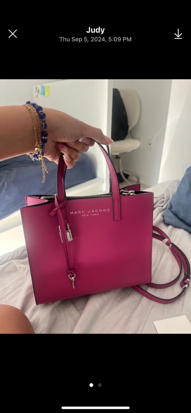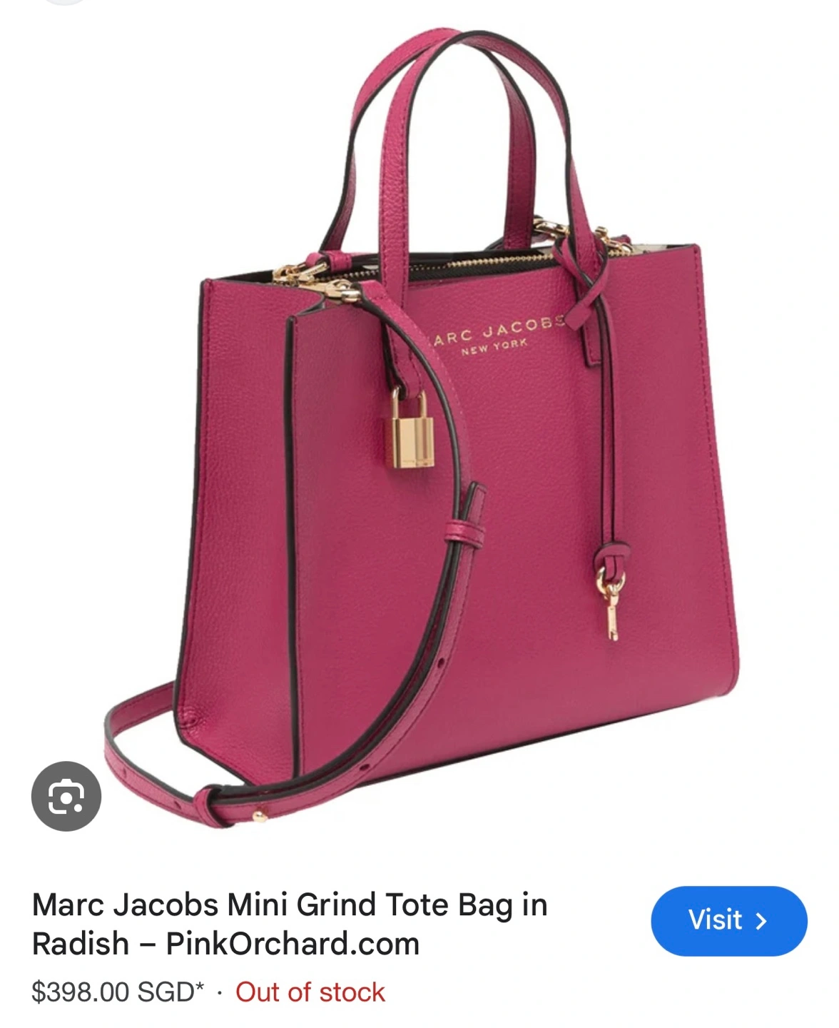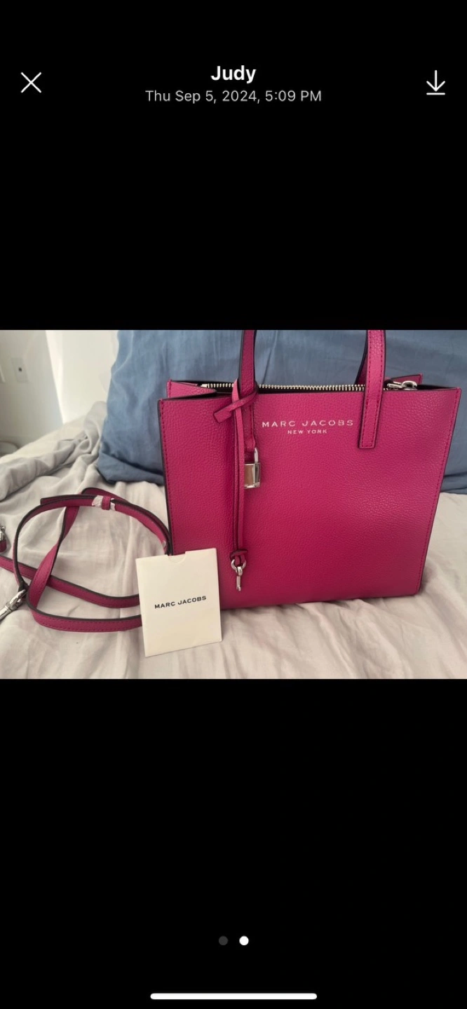 Limited edition last bag! Check it yourself!馃挅 Crafted in rich leather with signature hardware, the Marc Jacobs Mini Grind Tote comes in a portable, organized design that's stylish and modern. Comes with an optional shoulder strap for versatile styling. - Colour: Radish/fuscia/ hot pink - Top Handle/ Shoulder/ Crossbody Bag - Calf Leather - Embossed Signature Lettering Logo - Dual Top Handle Straps - Detachable, Adjustable Shoulder Strap - 3 Compartments in Total with Centre Zip Divider - Gold-Toned Hardware - Unlined with Signature Print - Size: L:9" W:4" H:8" - Size: L:23cm W:11cm H:21cm