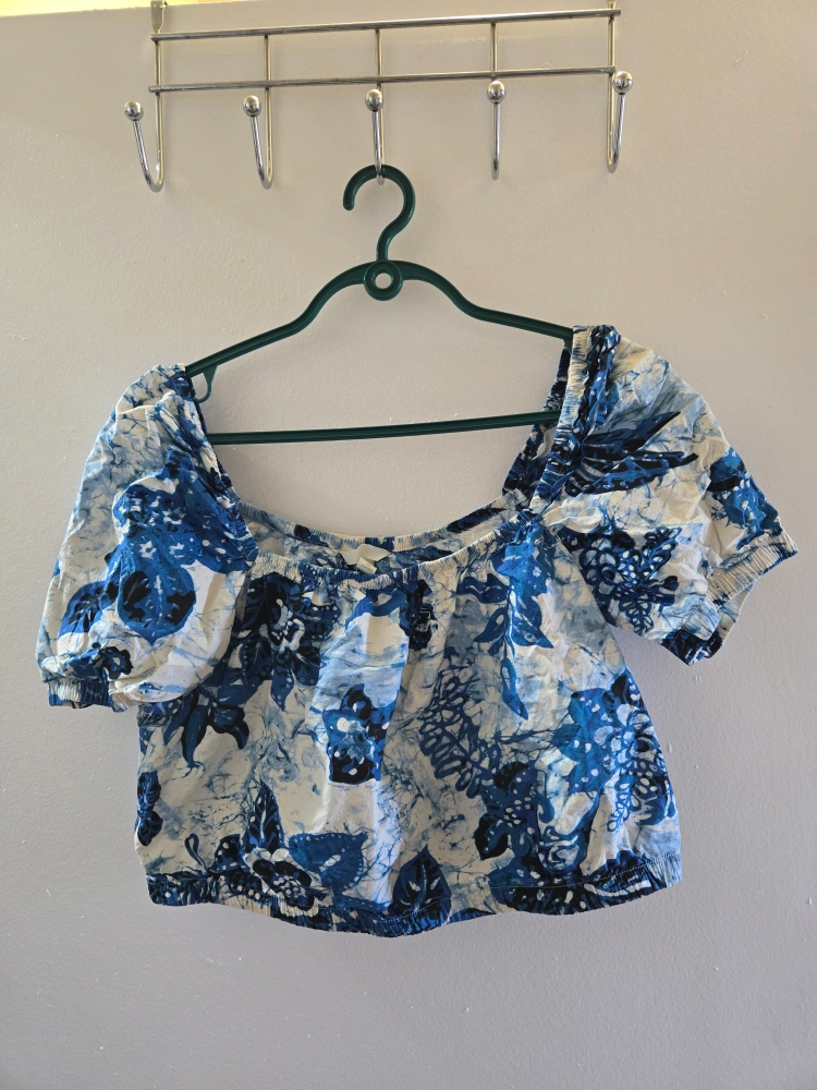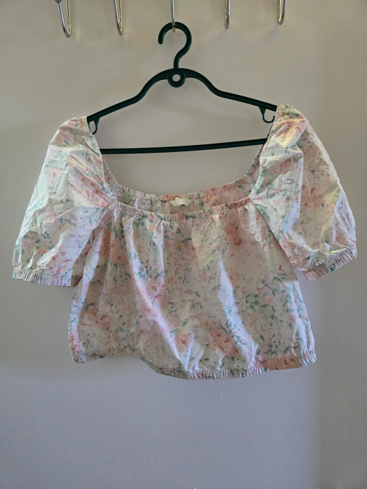 H&M Short-sleeved can be off the shoulder crop top with a floral print. Size M. Take both please. Thank you