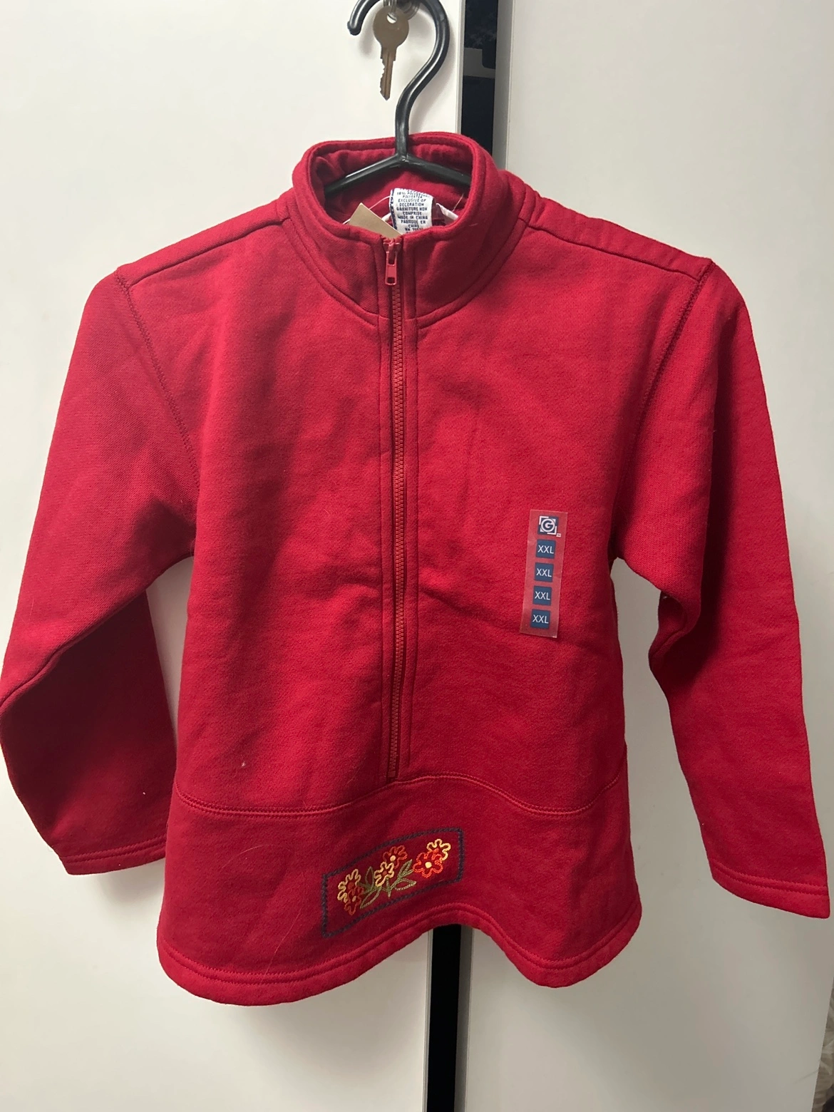 Pick up only Red zip up sweater with embroidered flowers on the bottom. Long sleeves, mock neck.