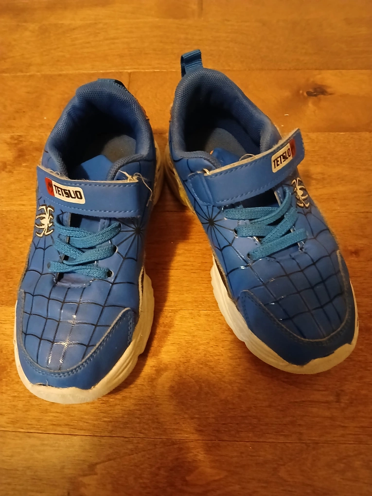 Blue Spiderman sneakers with velcro and laces. Size 32 EUR.