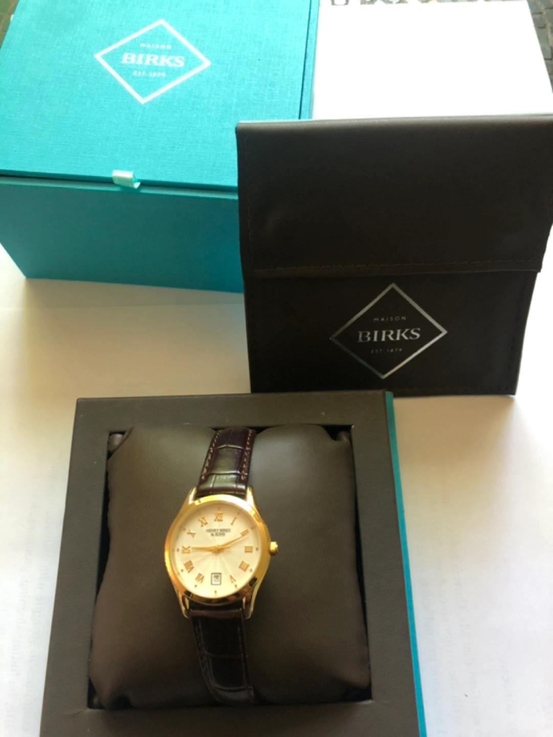 Maison Birks Collection Round Women’s Watch with Ivory Dial and Brown Leather Strap circa 2015. Like new, with box, and guarantee certificate. Needs a battery, but Birks offers lifetime battery replacement - all you have to do is bring the watch along with the guarantee certificate to any Birks location to have battery replaced. Pick up in the Deer Park area - Yonge & St. Clair (Lobby security desk of St. Clair Centre - 1 St. Clair Ave. E, just by Starbucks upstairs from St. Clair subway stn) Cash only please.