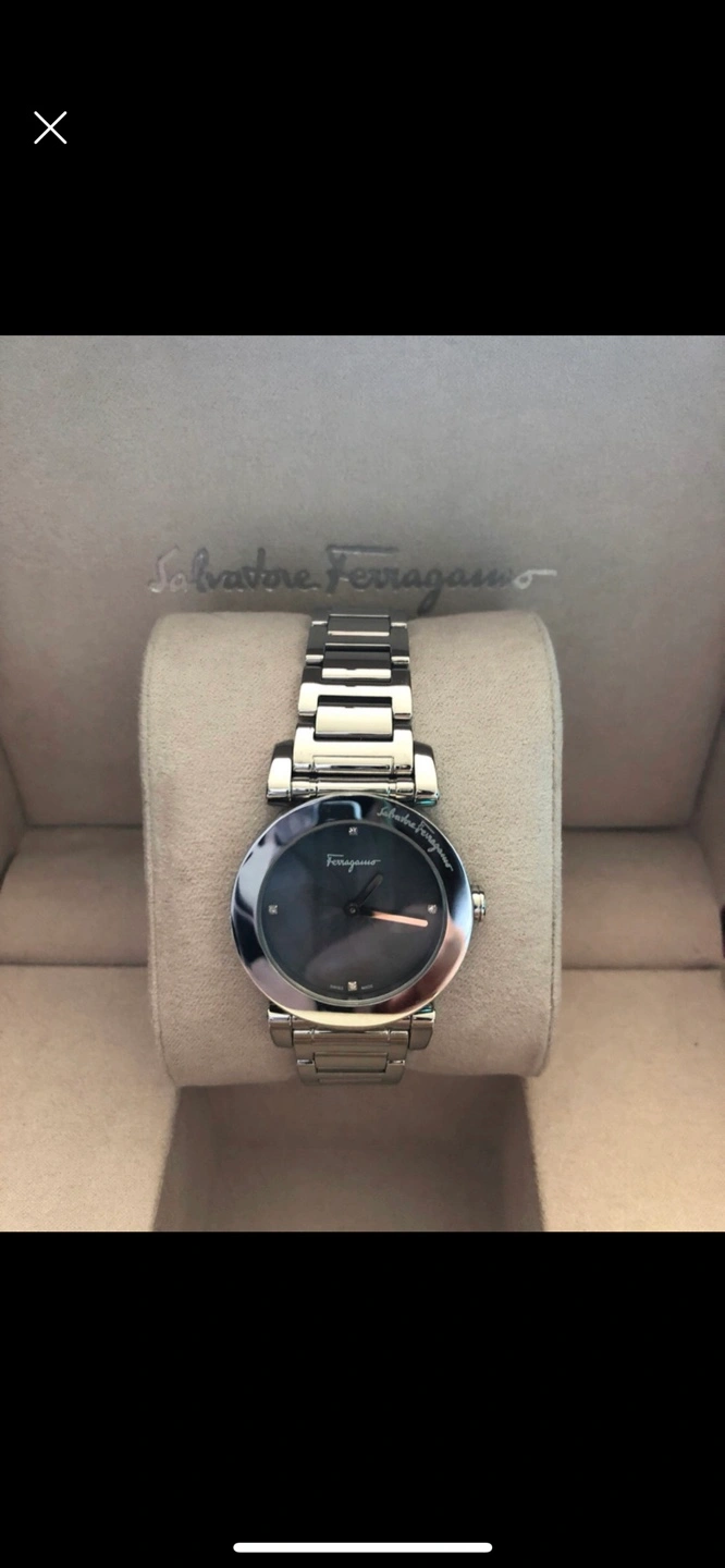 Authentic 100% Black face and a stainless steel band. Mother of pearl, “Diamond indexes 4 pcs/0.02 ct”. Size: 7.26-7.5 in New with Box, booklet and a pouch Serious inquiry only please!