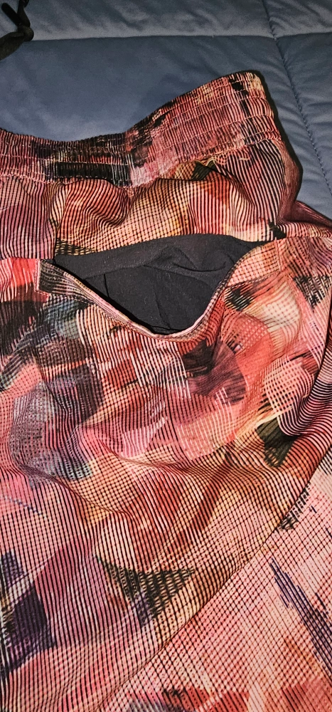 Lululemon Run: On Shorts. Size 12. Abstract print. Black waistband with a drawstring. Pocket at the back and brand new.
