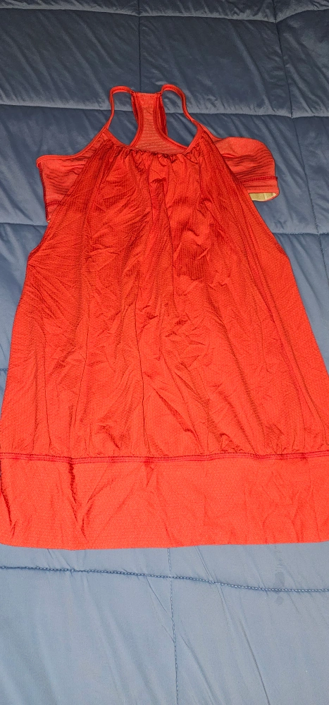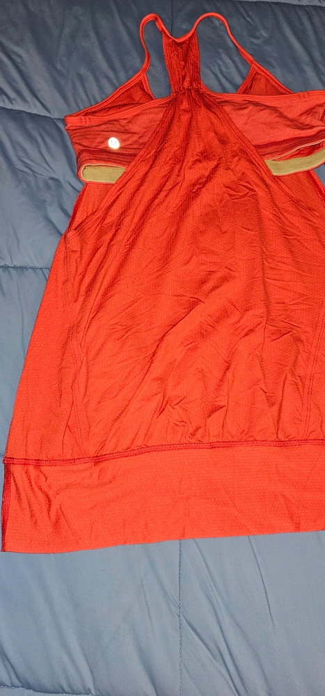 Orange tank top with built in racerback sports bra.