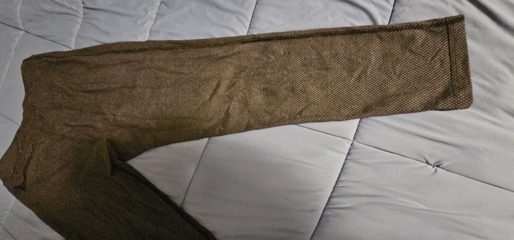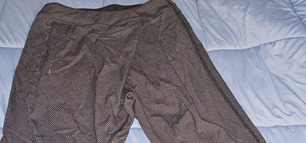 Dress pants with a small white pattern. They have a zipper pocket on the back and two front pockets. The fabric and style are cool. This is an older model, so the fabric is more resistant.