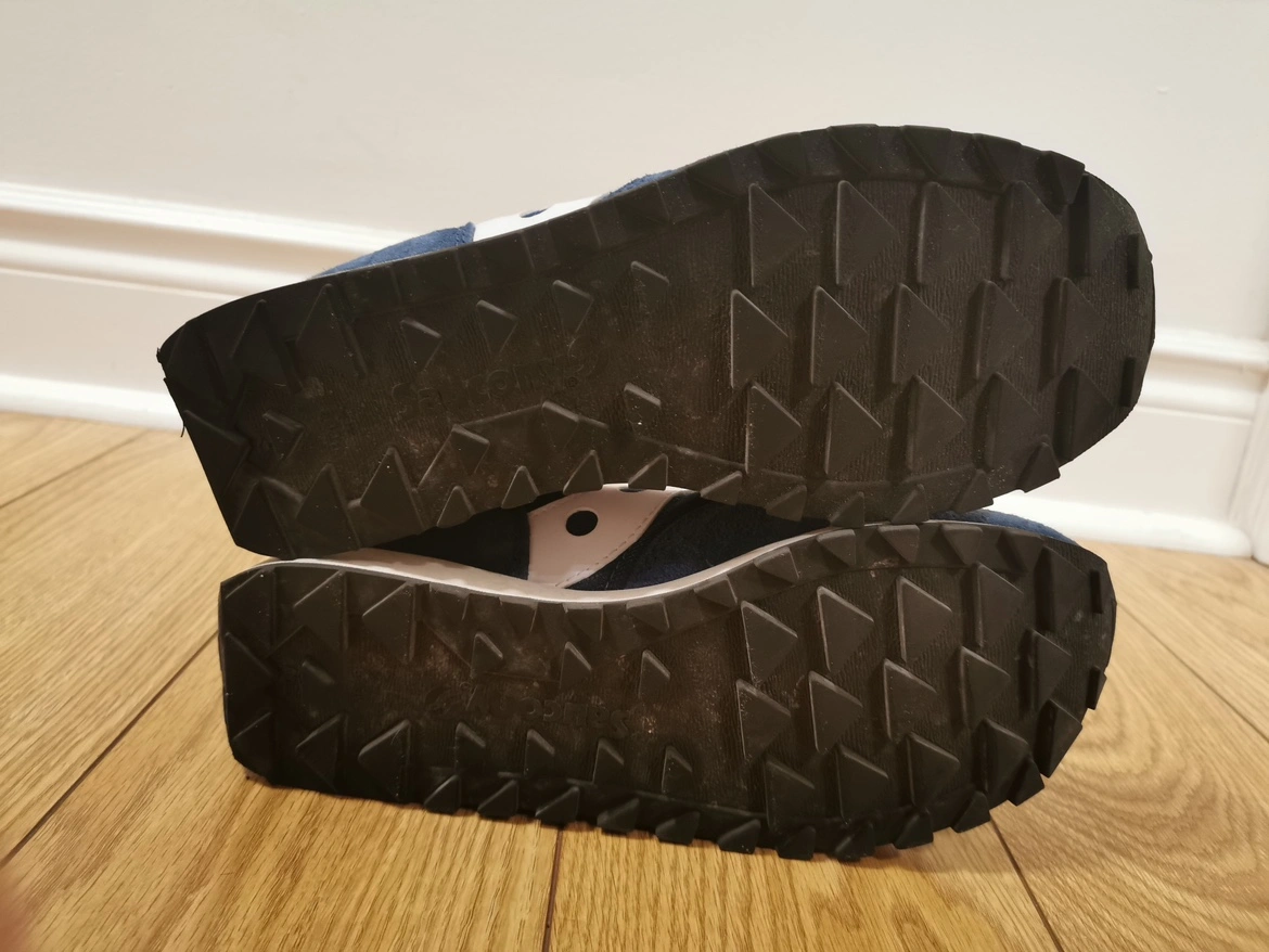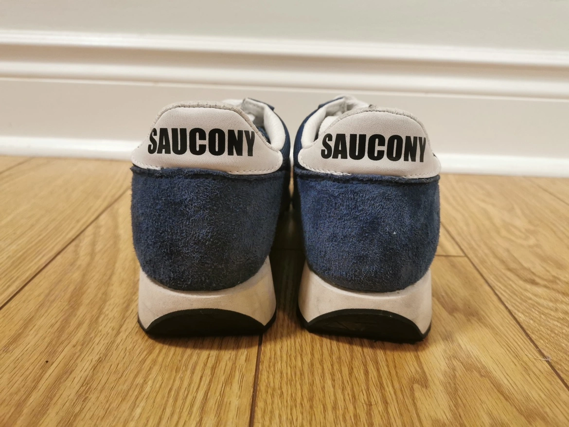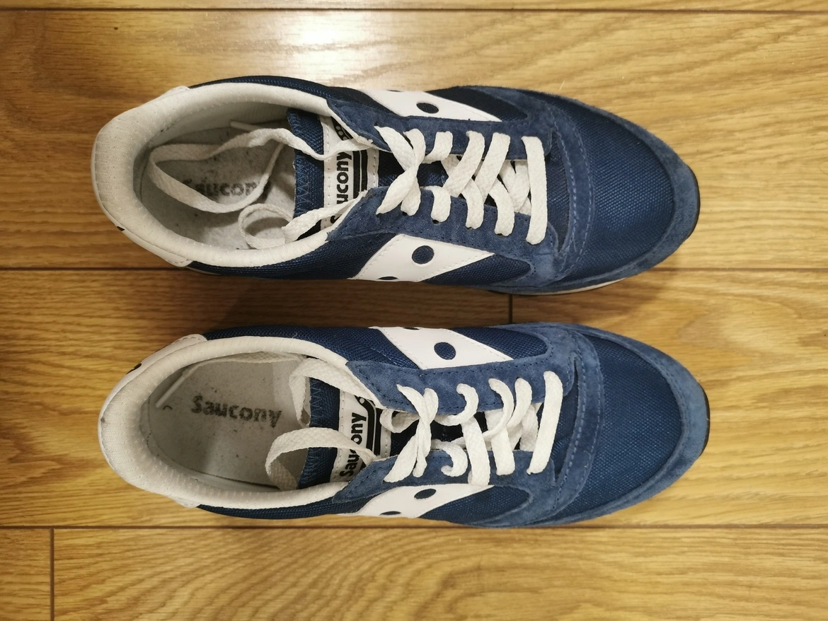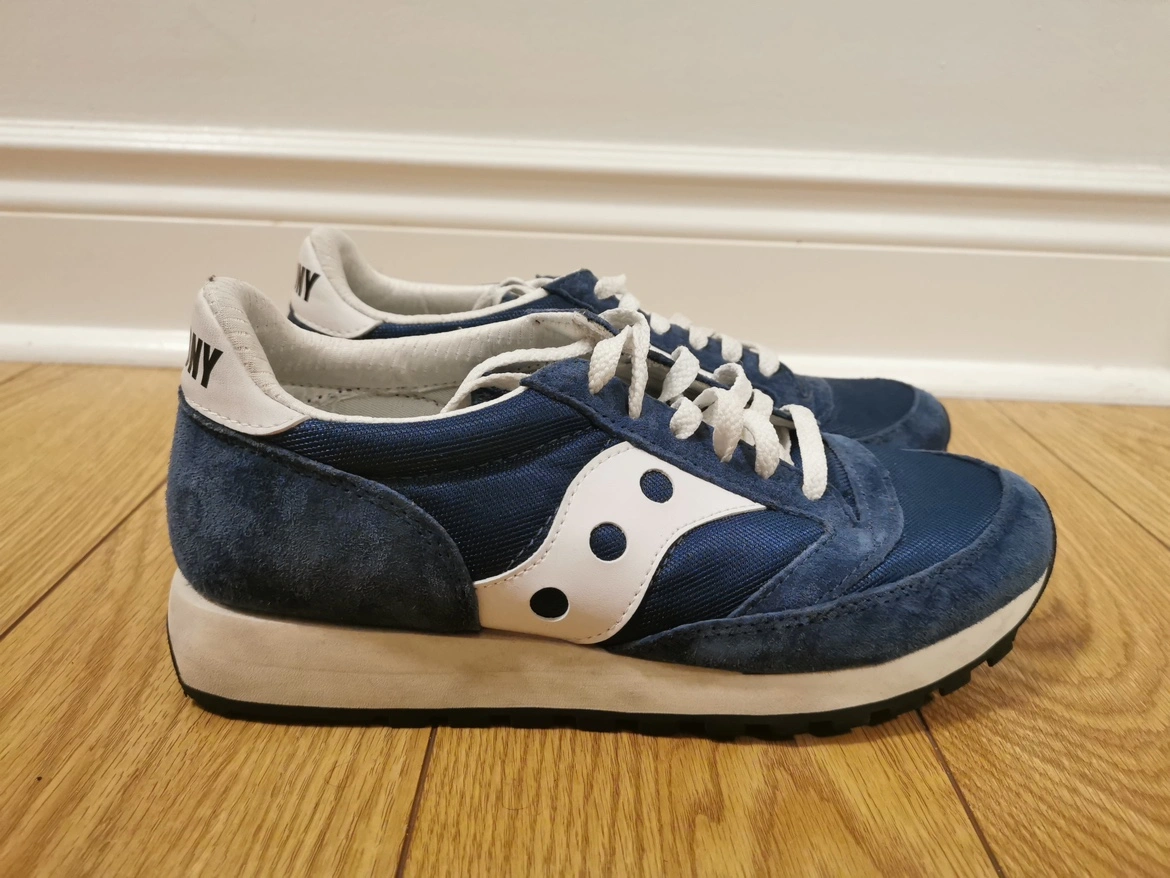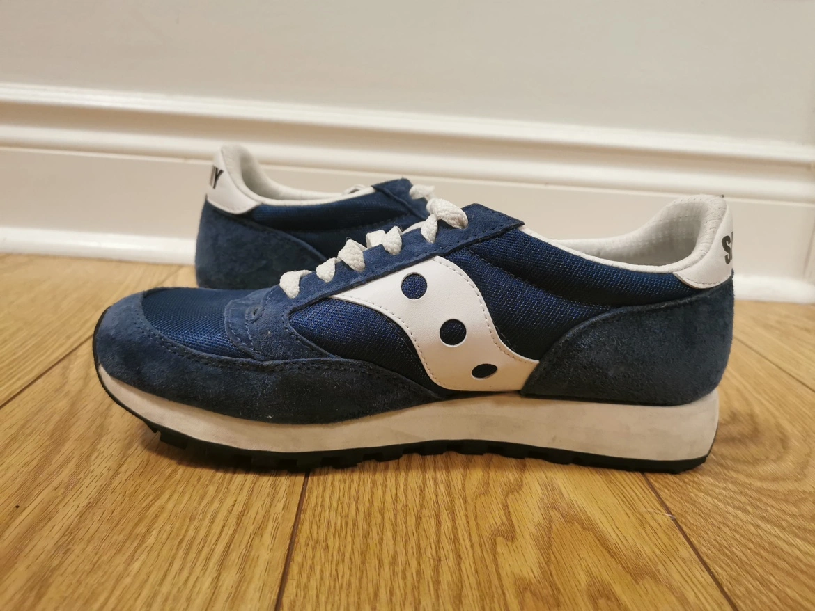 Blue and white sneakers, worn but in good condition. These have been worn no more than 2-3 times, my partner has a similar looking pair that she likes better.