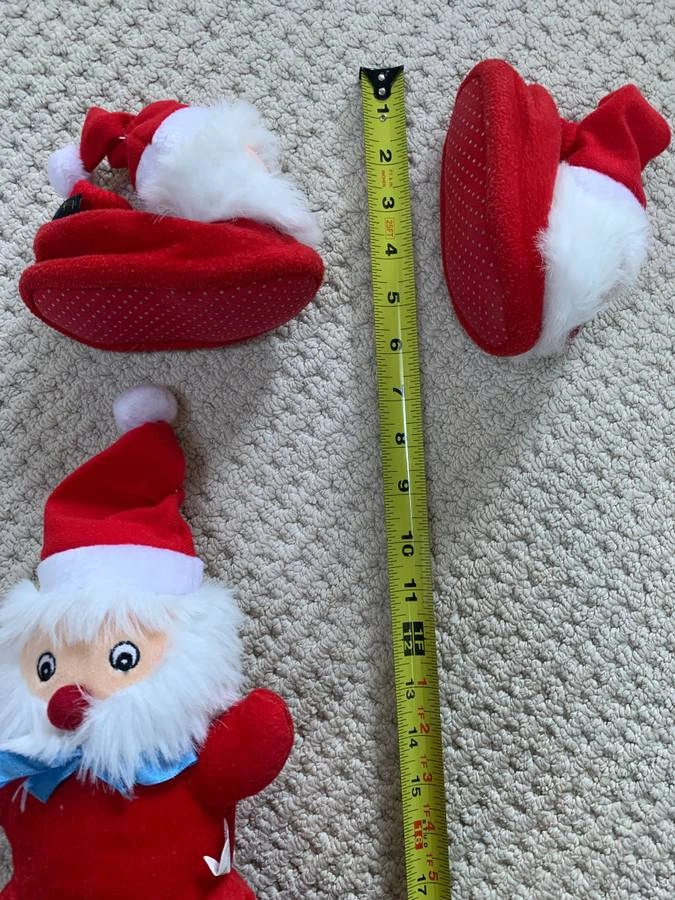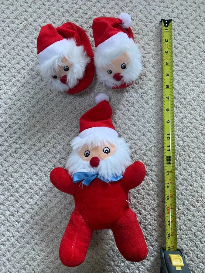 Red and white plush Santa Claus slippers. And plush toy. 🧸