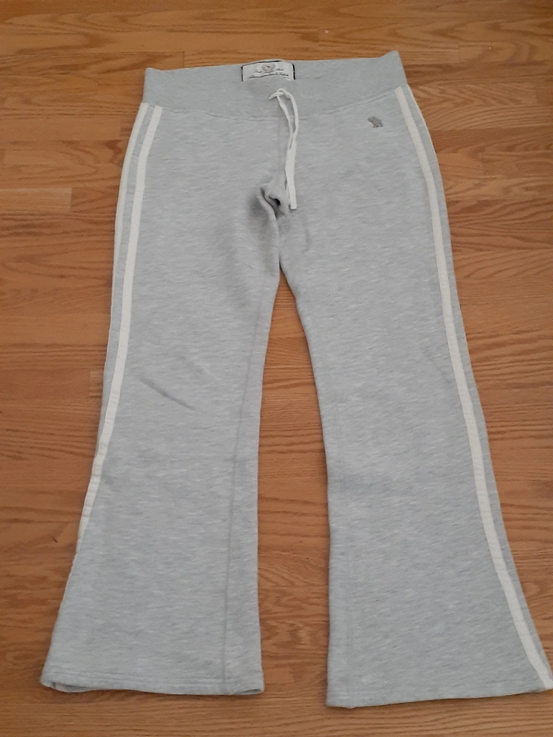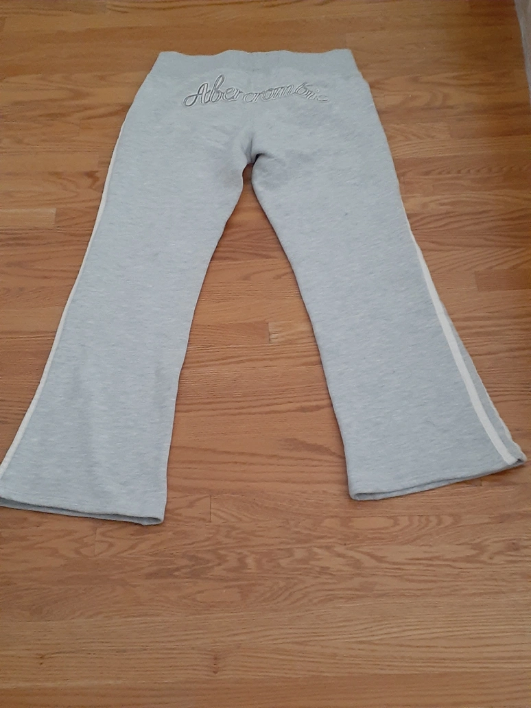 Still Available! Grey sweatpants with white side stripes. Drawstring waist. Fleece lined. Thick and warm. Decluttering. No issues. In seam: 32" Waist: 16.5" Please see all photos. Cash and Porch Pickup close to Willowdale Middle school area.PLEASE check distance before responding!