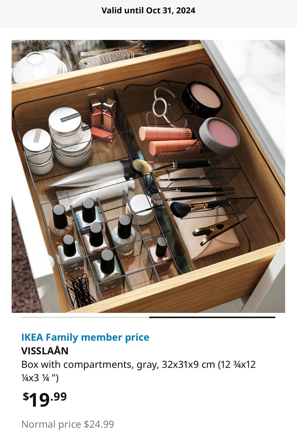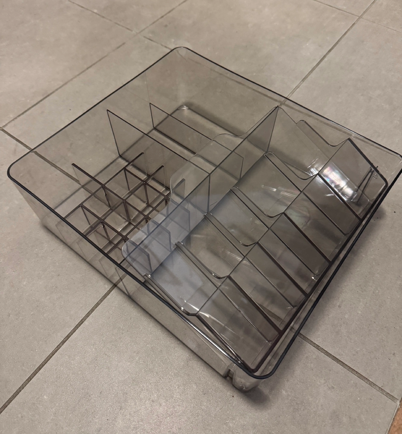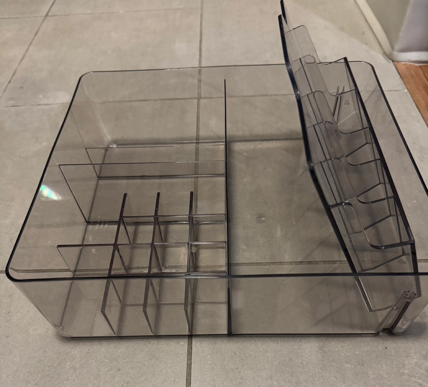 Clear plastic storage box with compartments. Ideal for organizing makeup or other small items. Never used only bought. Online member pricing is $19+ tax Regular is $24.99 No scratches or stains.