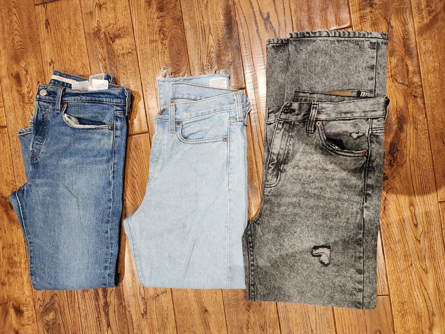2 pairs Levis Jeans in size 28 1 pair Bluenotes Jeans in size 06 2 pairs were only worn once