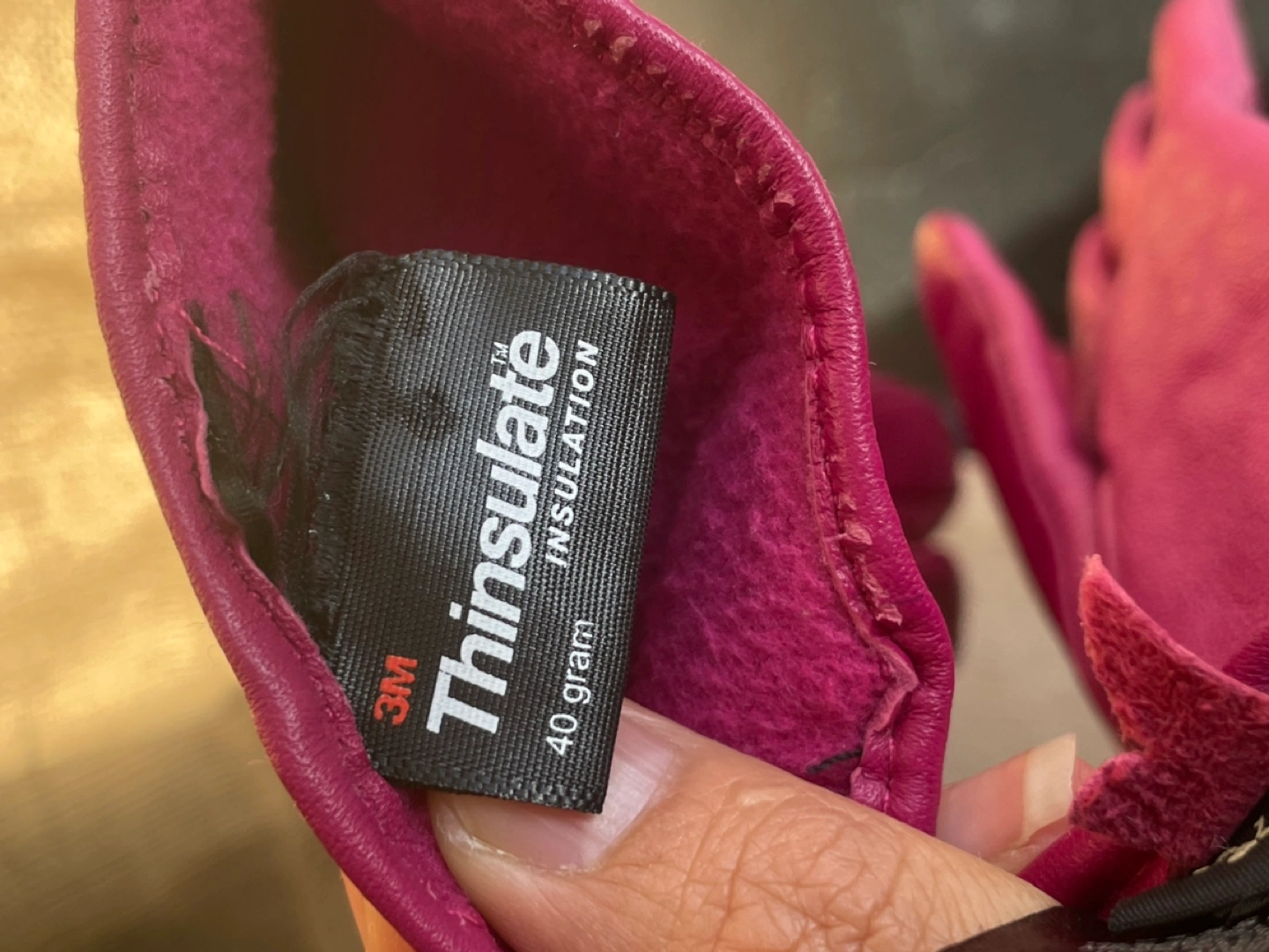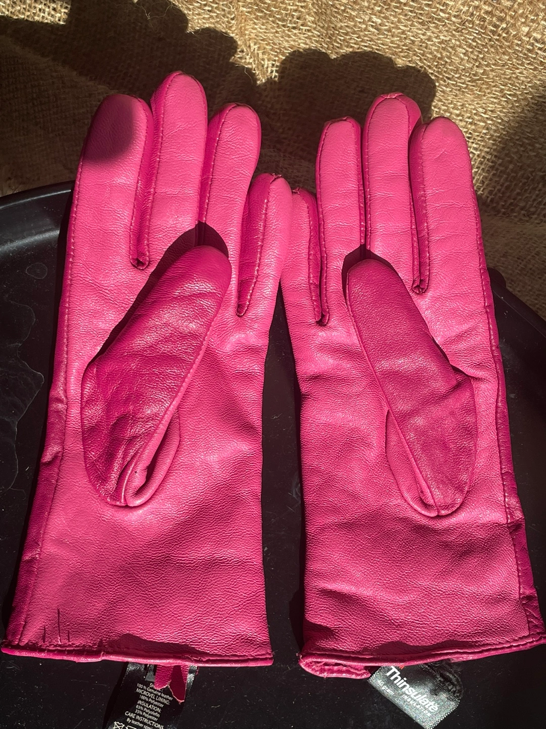 Pink leather gloves with Thinsulate insulation. Good condition.