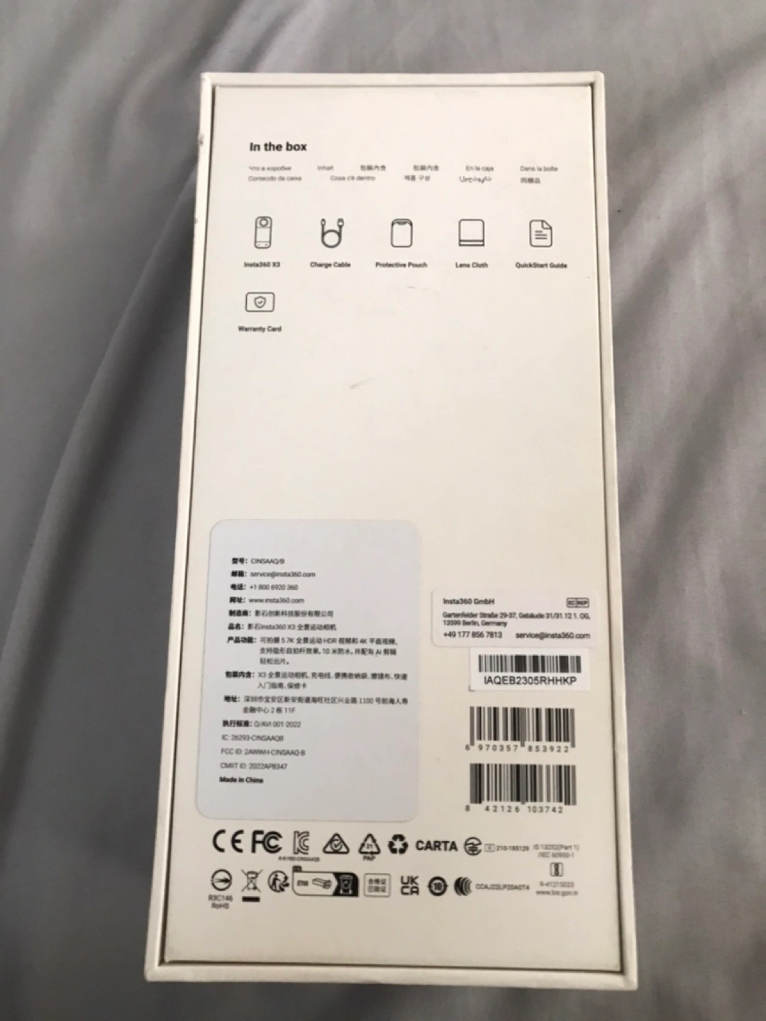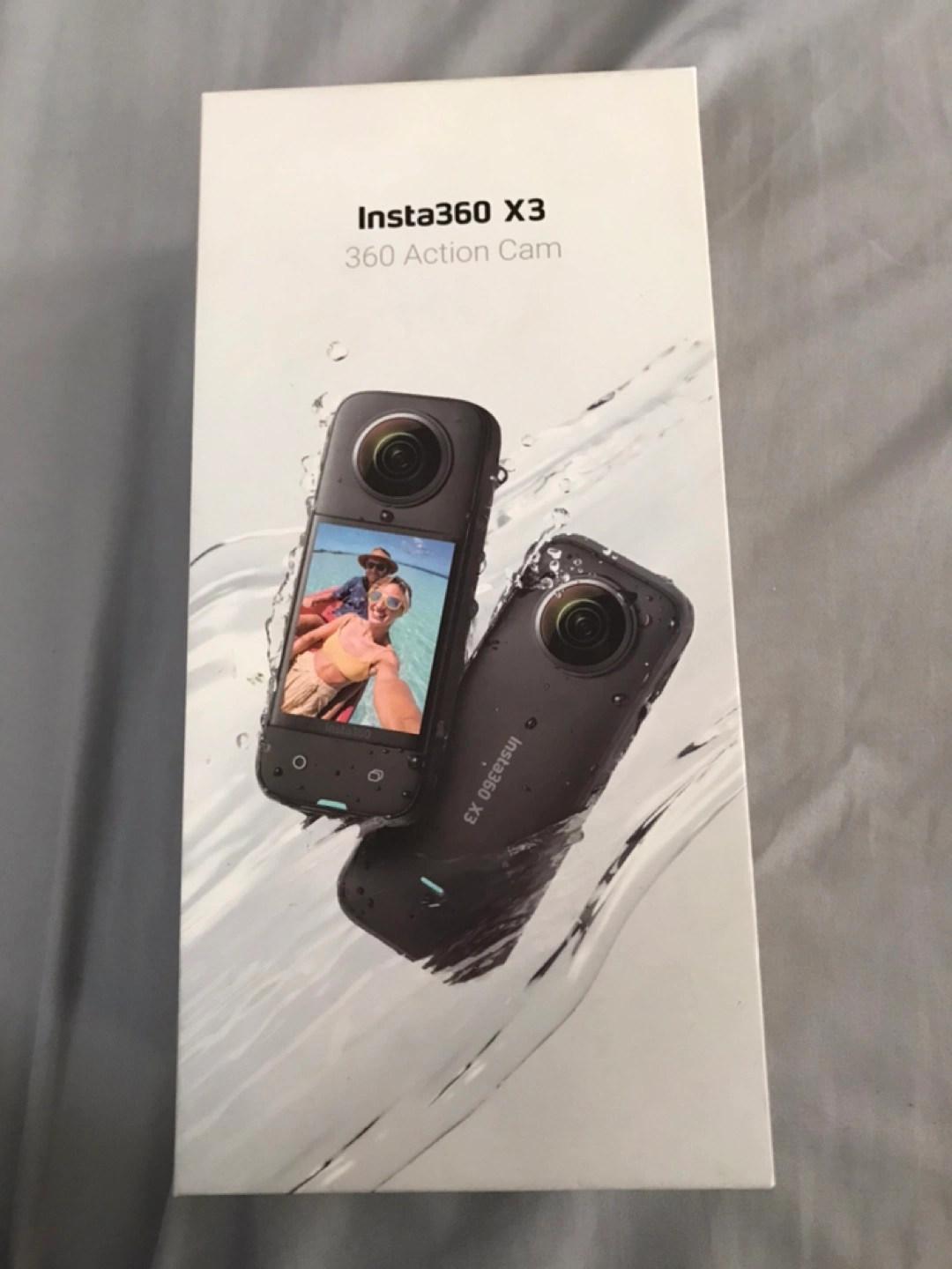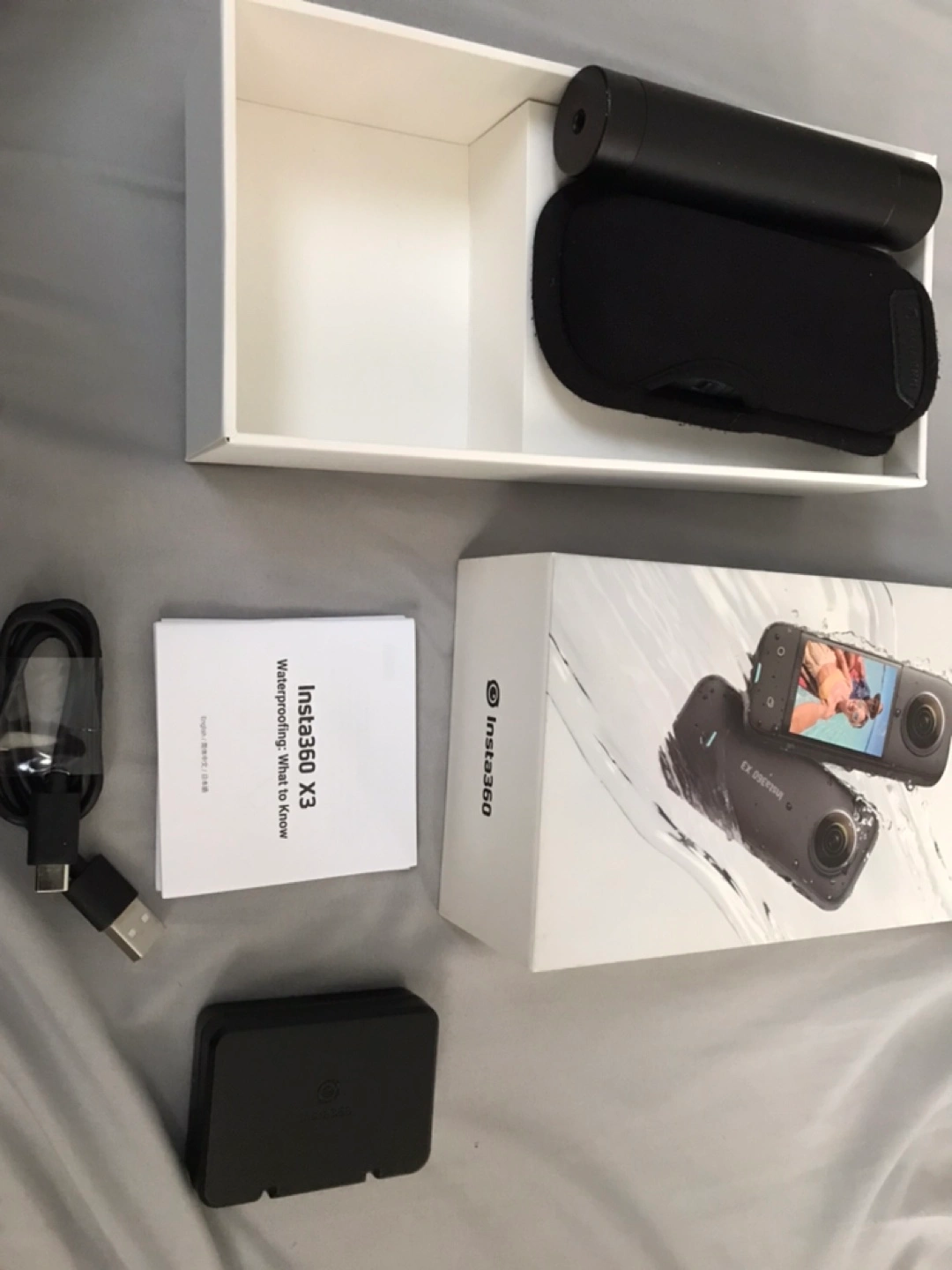 Insta360 X3 360 action camera with battery and protective pouch. Comes with all original packaging and accessories.