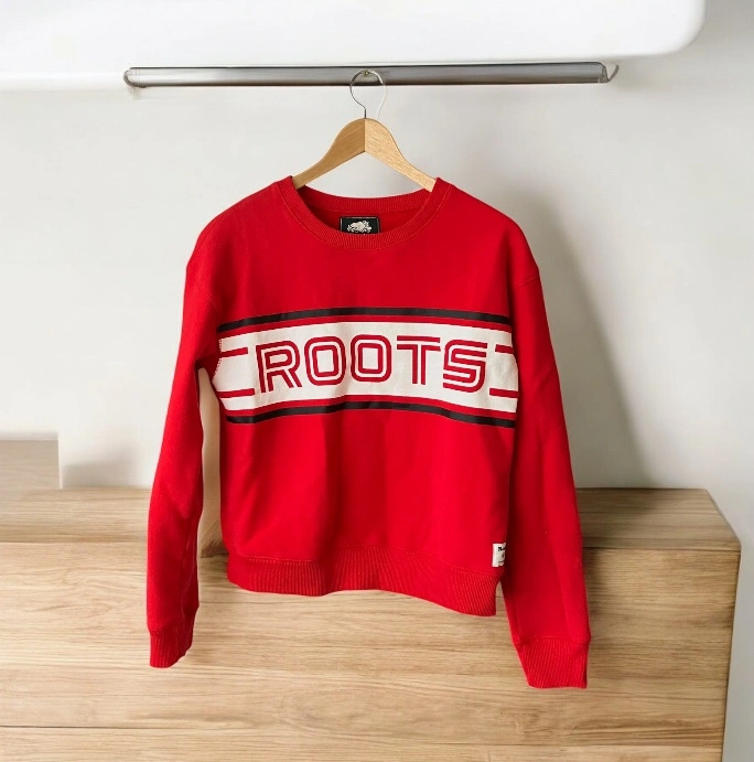 NWOT ROOTS red cropped sweater with bold red and white ROOTS logo on the front. The sweater gives off vintage yet Y2K vibes. Great for those upcoming cold winter nights on the ski hill or sitting inside by the fire. Size Medium Measurements approximate: Pit to pit: 19" Length: 21.5" Cuffs and hemline are a thick sweatshirt band. Super cozy and the sweater does have a bit of stretch. 80% Cotton 20% Polyester I ship using recycled mateiral within my home to reduce waste. The package will be wrapped with care if requested or deliver for a fee